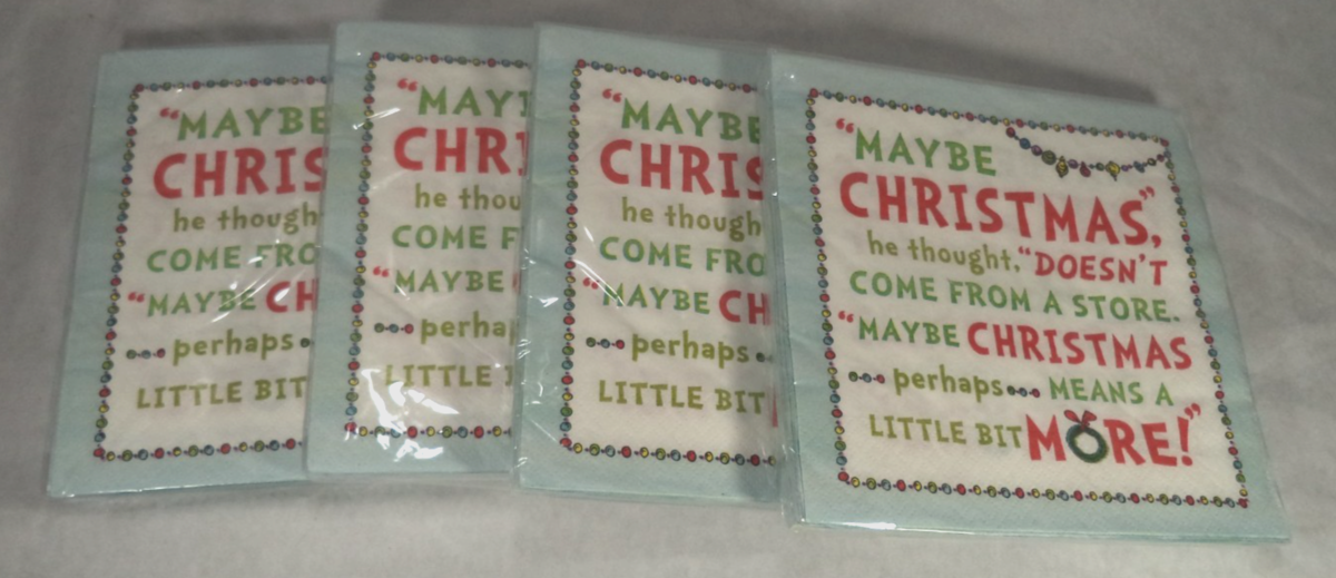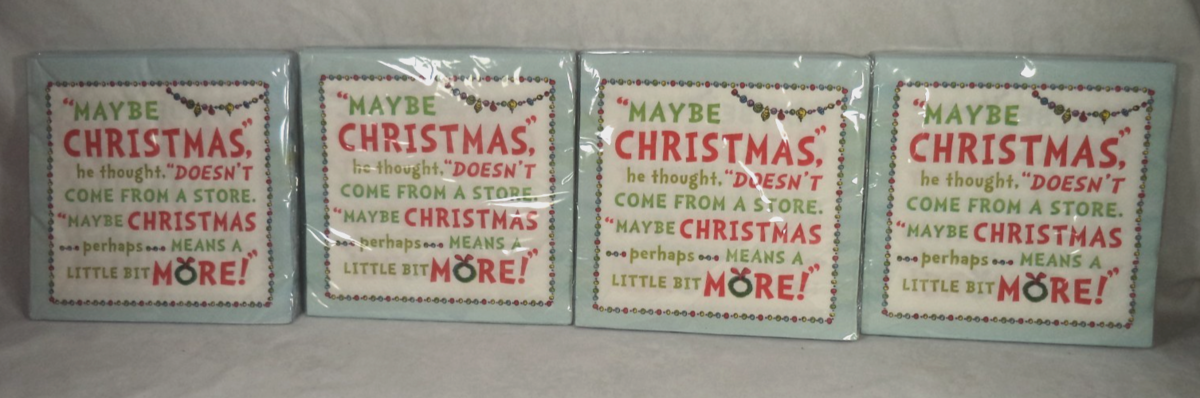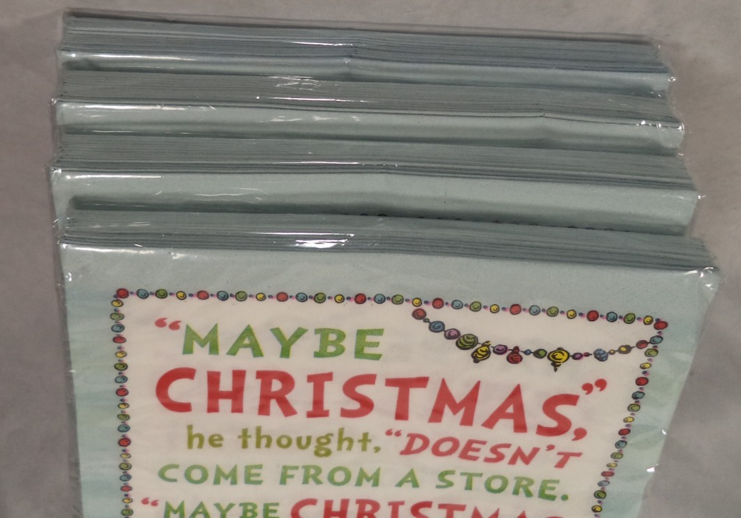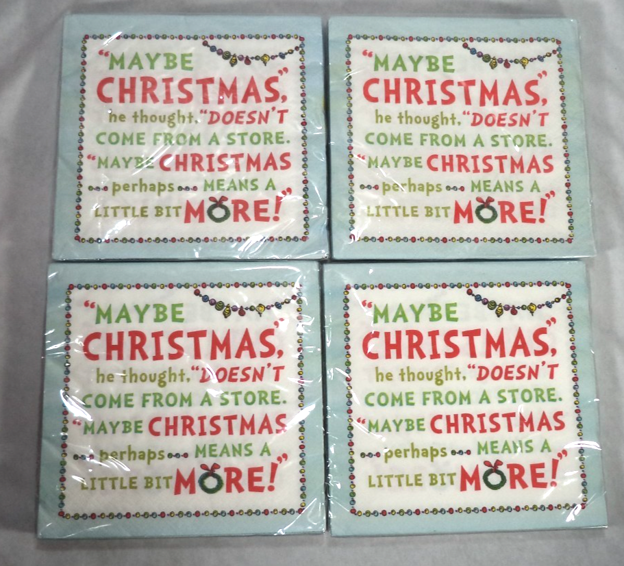 4X Dr Seuss Grinch Xmas Lunch Paper 64 Napkins 12 7/8 in x 12 7/8 in Tableware