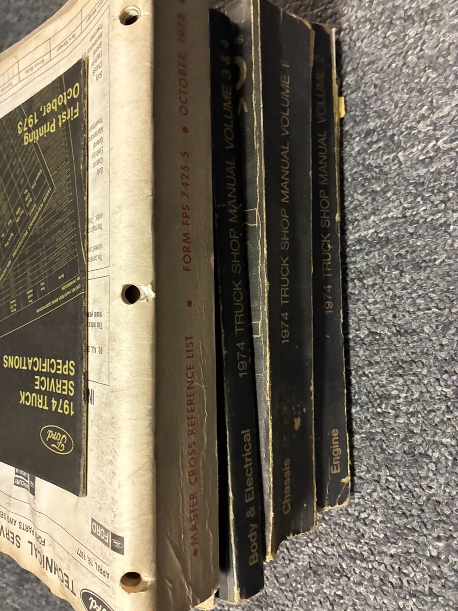 1975 Ford LIGHT TRUCKF-100 F-150,250,300/350/Econoline,E100,200,350 factory Service manual 4 VOLUME SET, Specifications Booklet, Master Cross Reference List, Tech Bulletin Page, Ac Booklet