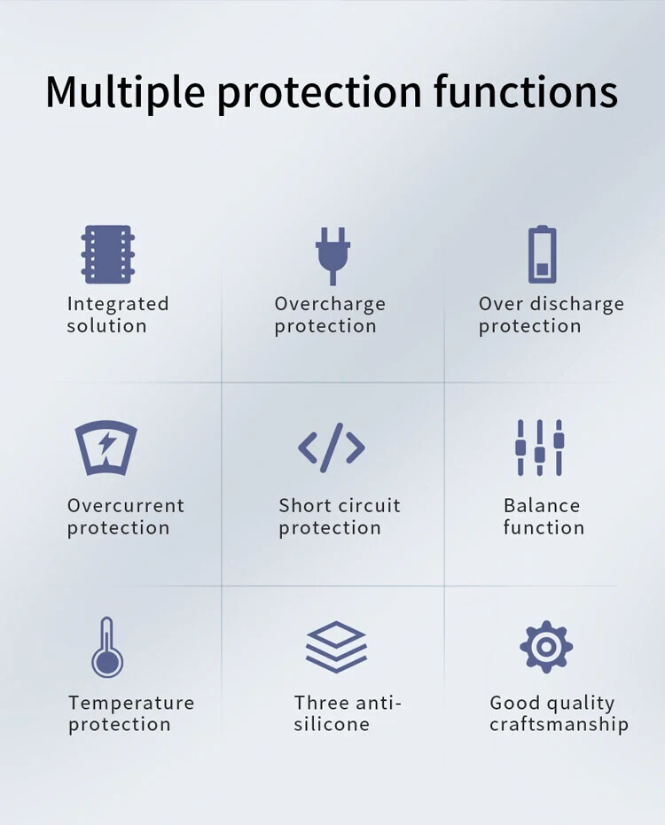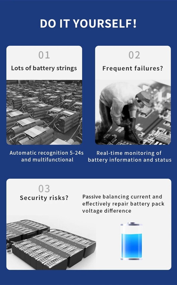 This BMS can automatically identify 7S 8S 9S 10S 11S 12S 13S 14S 15S 16S 17S 18S 19S 20S 21S batteries, just follow the specific shorting method. Built-in free bluetooth with active equalization, 3 NTC, B- and C-soldered 5000mm silicone wires.