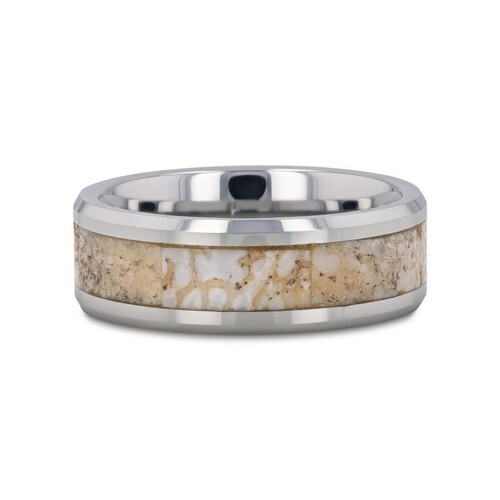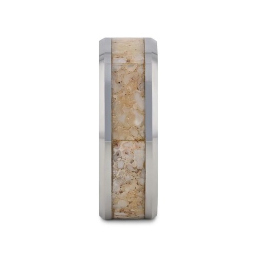Men?s Tungsten Wedding Band ? White Dinosaur Bone Inlay, Beveled Edges, 4mm?8mm