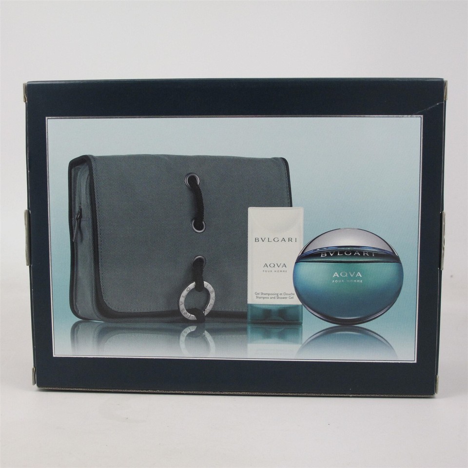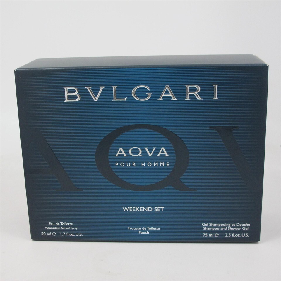 AQVA Pour Homme by Bvlgari 3 Pcs Set: 1.7 oz EDT Spray, Gel & Pouch NIB