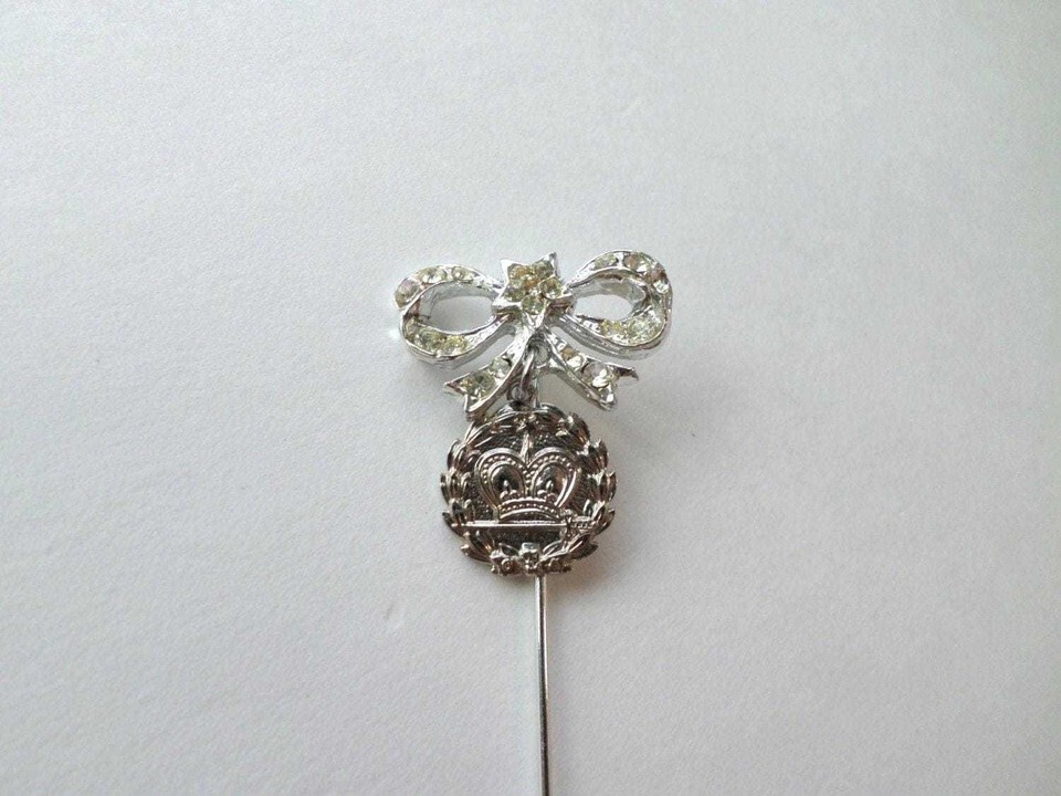Rare vintage masonic ladies regalia pin for the Order of the Amaranth (O of A). This beautiful Royal Matron lapel pin is a significant piece of fraternal collectible jewelry. Ideal for collectors of Masonic items or fraternal history. The design features elegant scrollwork sparkling stones that have a bit of glue yellowing.