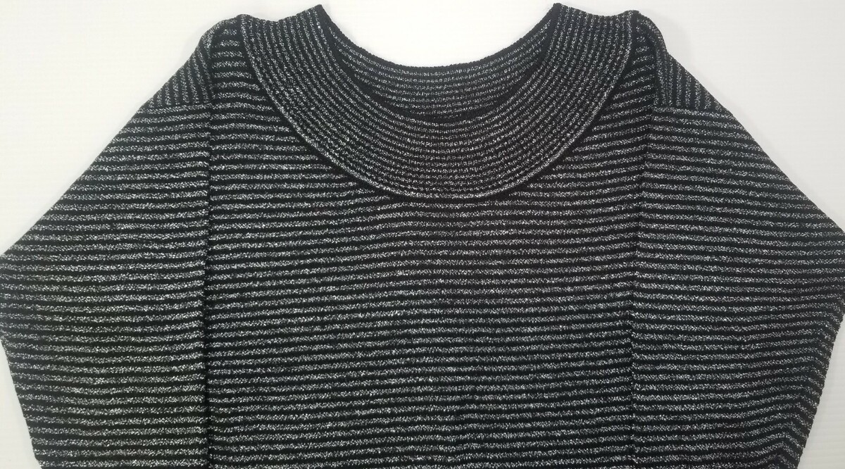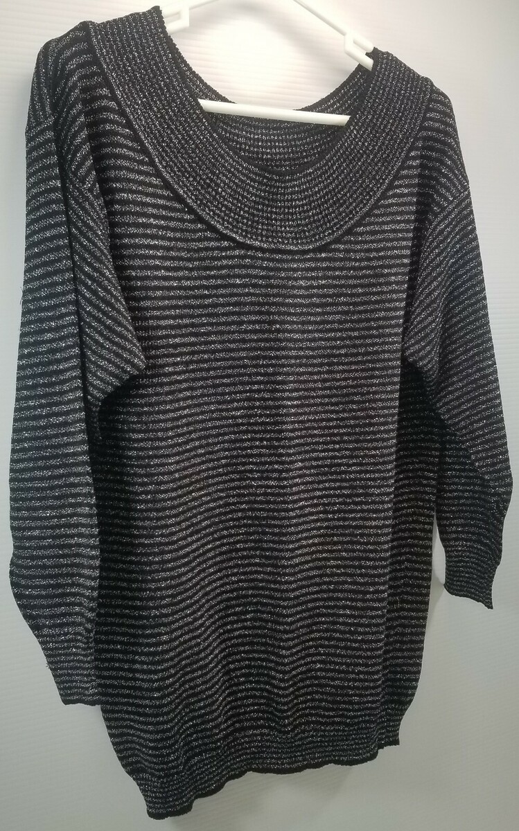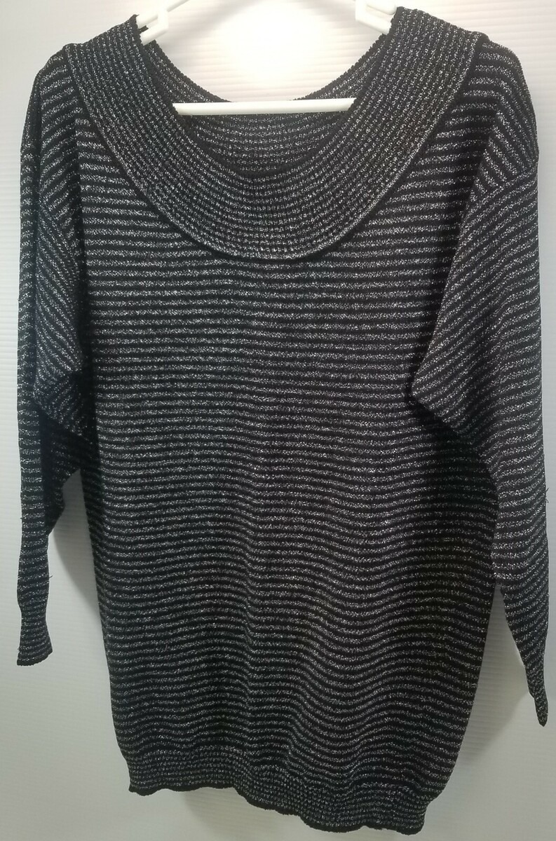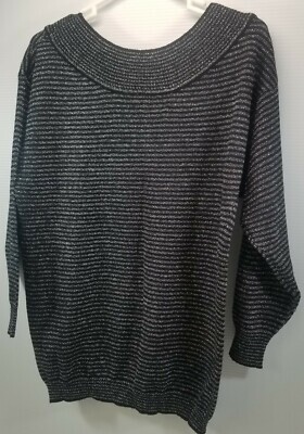 Woman's Jimmy Garcia New York Black Sparkly Silver Striped Shirt Blouse Medium