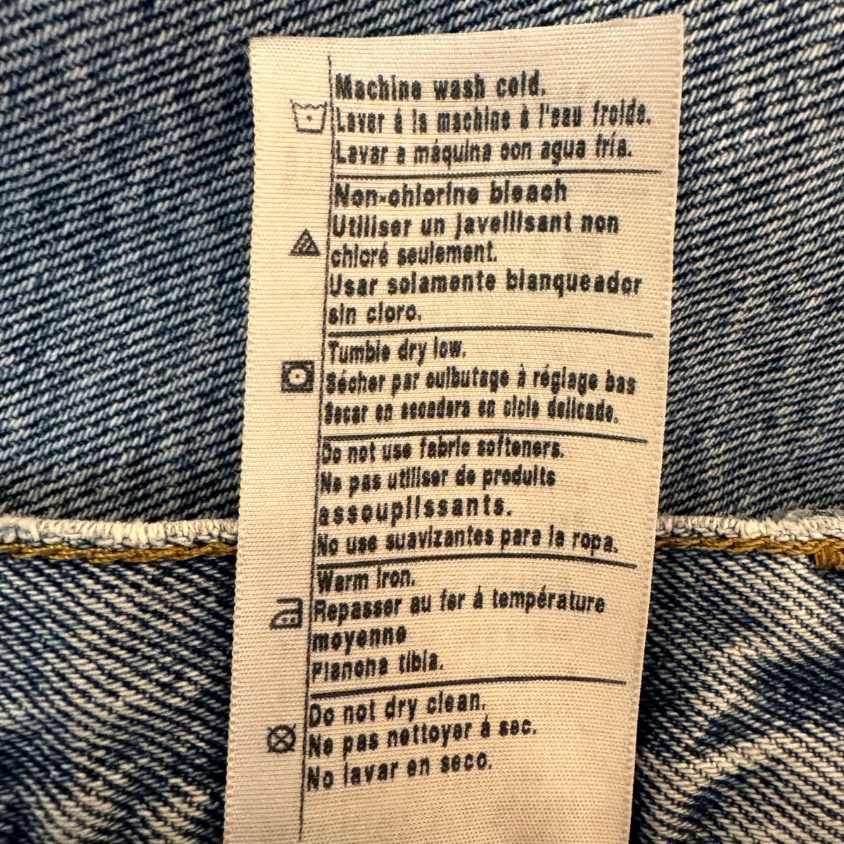 These jeans show heavy use, with fraying at the cuffs, thinning/wear at the crotch seam, and torn interior lining (see photos). Despite the flaws, they still have plenty of life left ? great for work, vintage styling, or DIY repair projects.