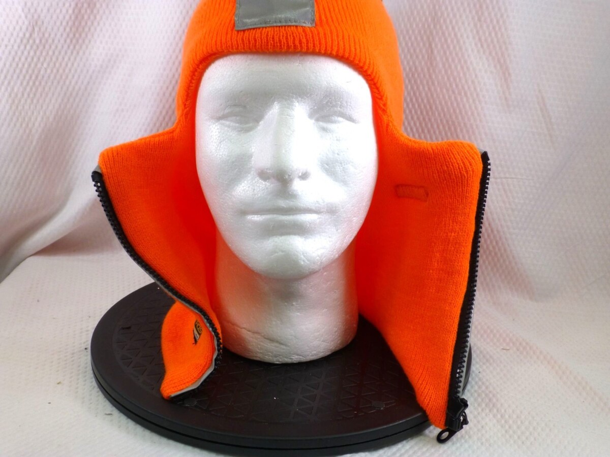 NWT High-Visibility Orange Knit Balaclava With Reflective Stripes & Zippered