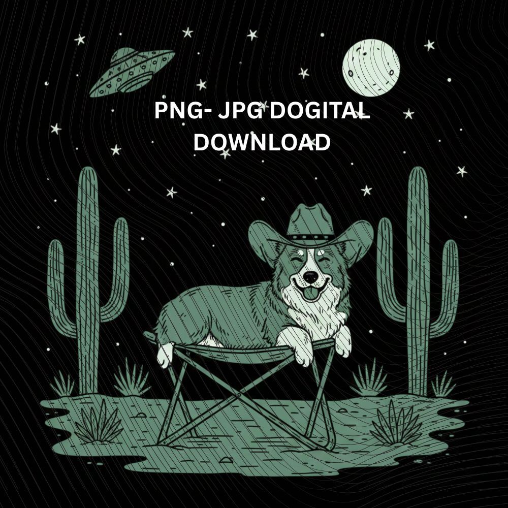 Corgi Cowboy Under UFO Png, Funny Alien Corgi Dog Western, Desert Space Graphic