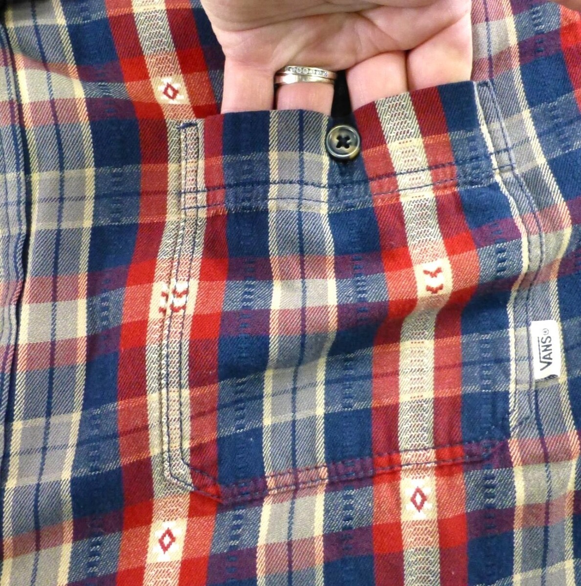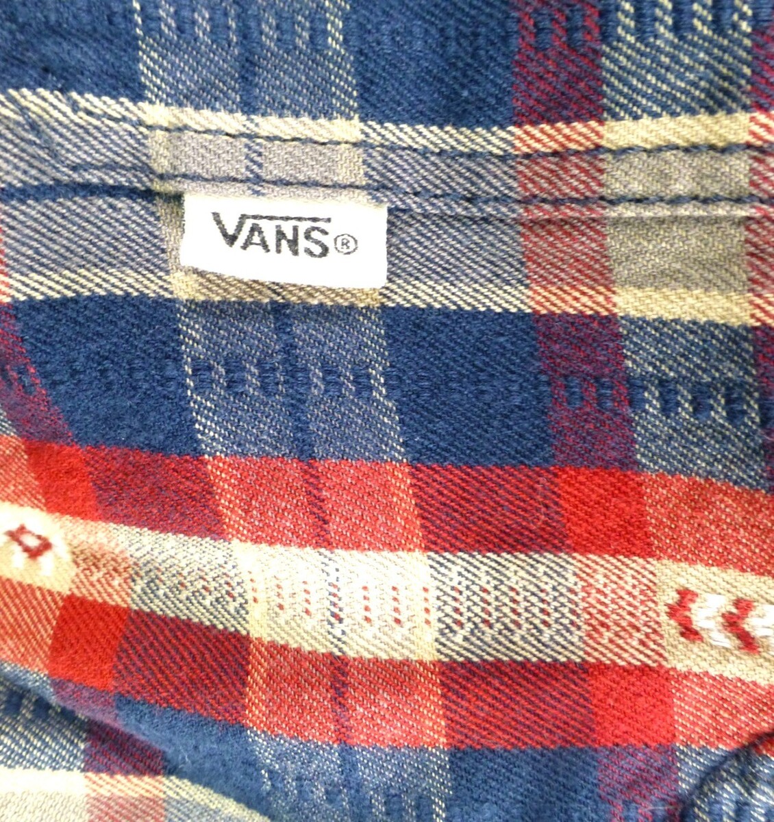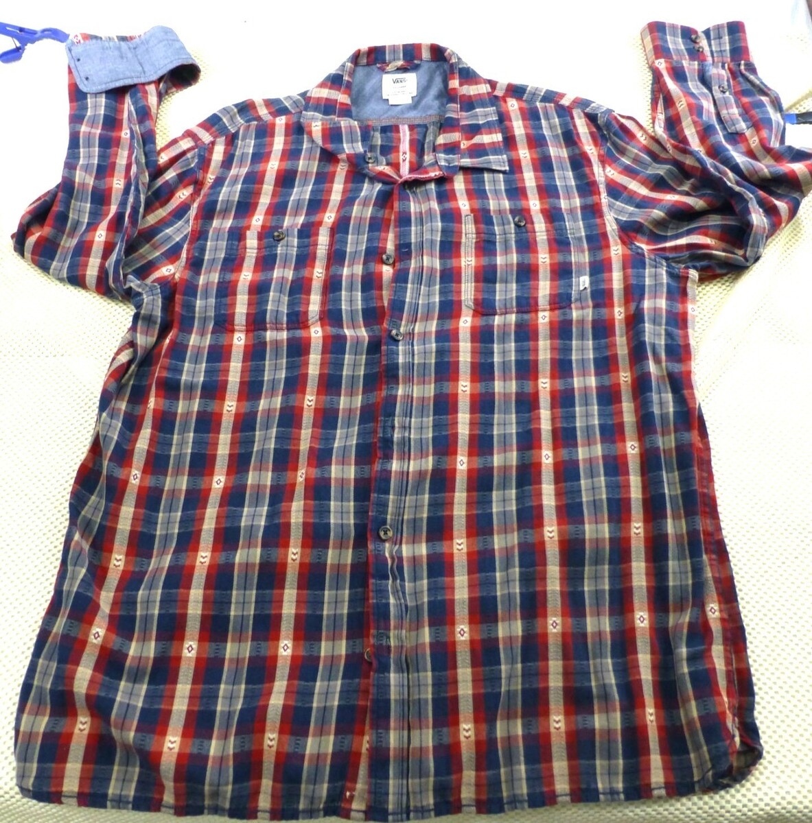 Vans Mens XX-Large Classic Fit Red & Blue Plaid Button-Up Shirt With Pockets