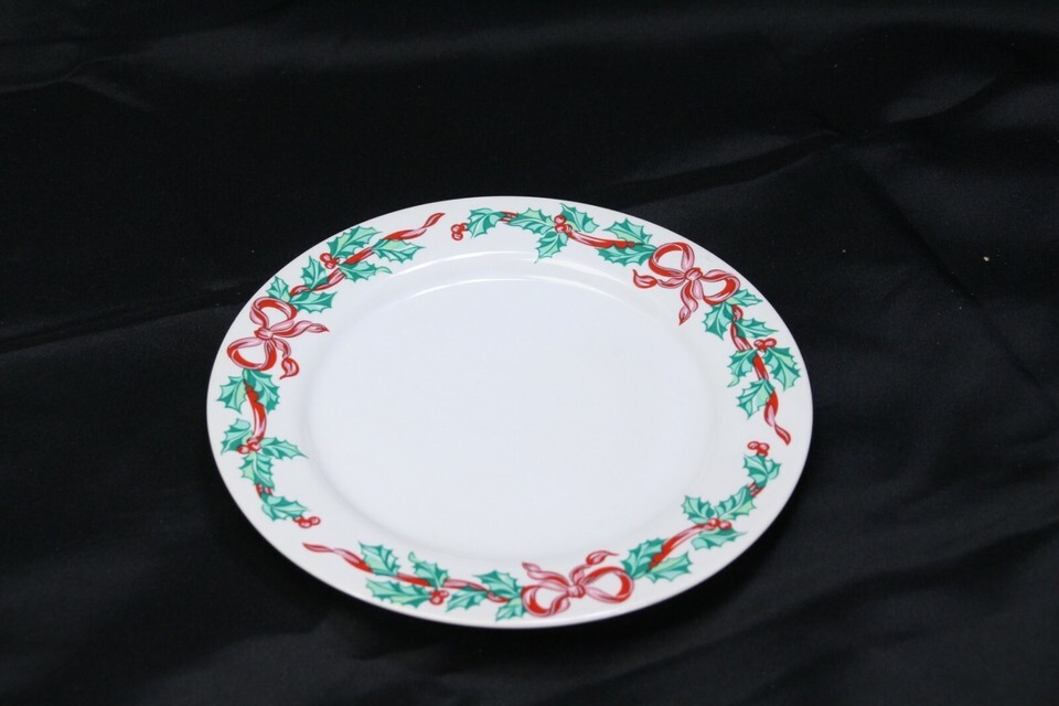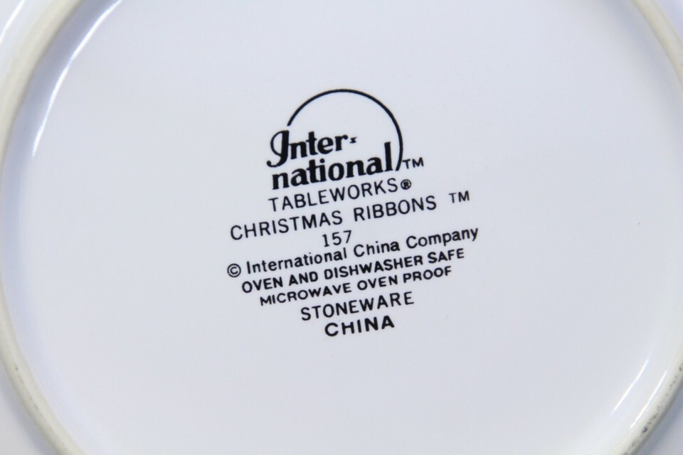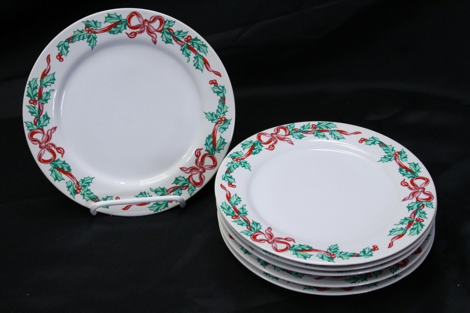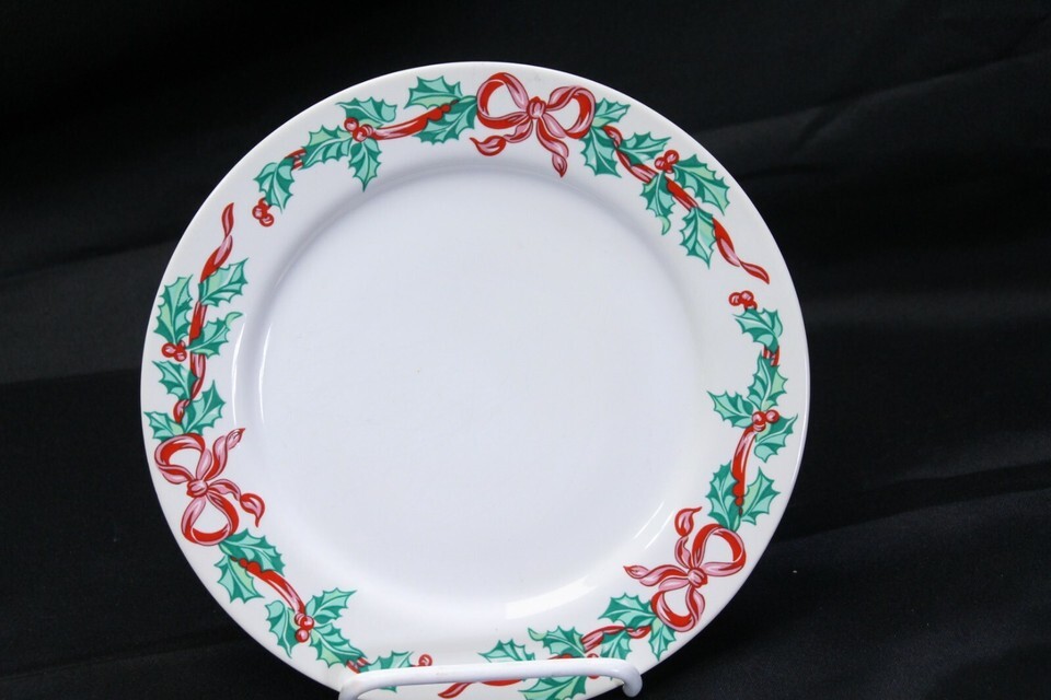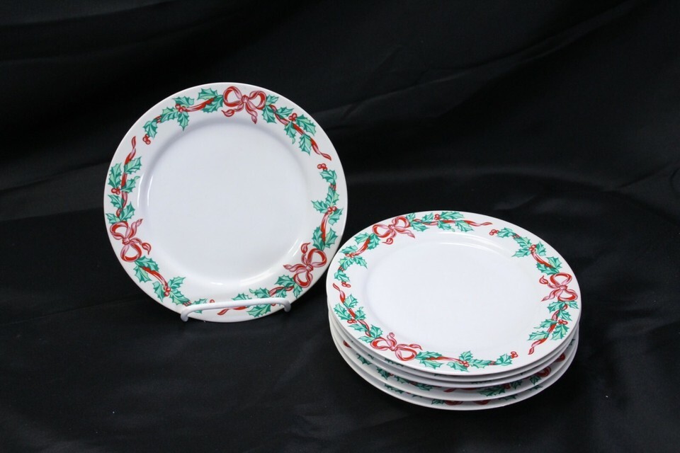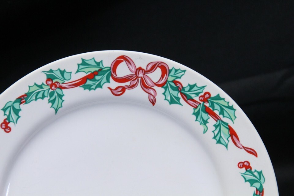 International Tableworks Christmas Ribbons Salad Plates 7-5/8" Lot of 6 Xmas