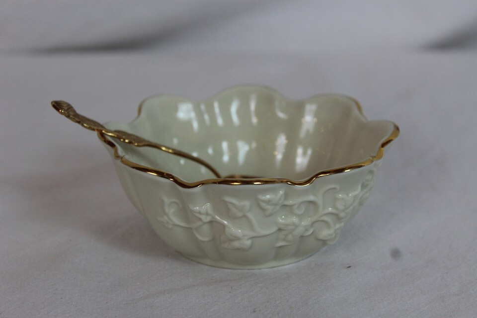 Vtg Lenox Sugar Bowl With Gold Serving Spoon