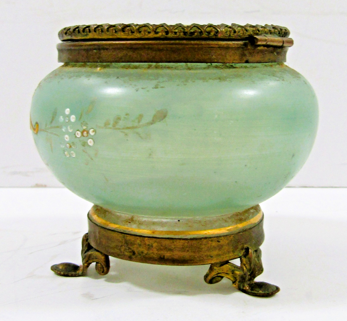 Antique Hungarian Bártfa-fürdő Otthon Szálloda Glass and Brass Lidded Box