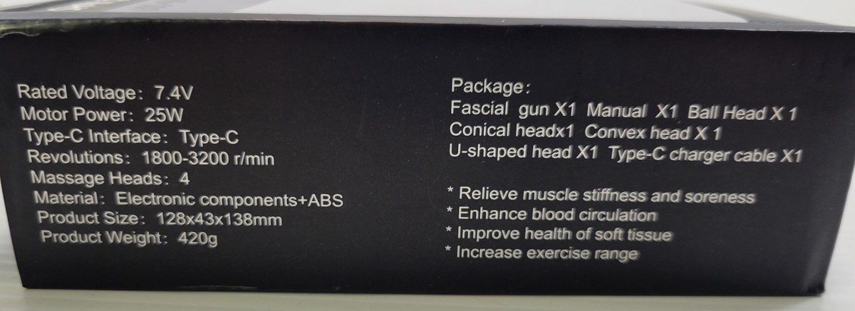 Gun is in very good, very slightly used condition. It is a very low powered motor specifically designed for light facial massage and not deep muscles.
