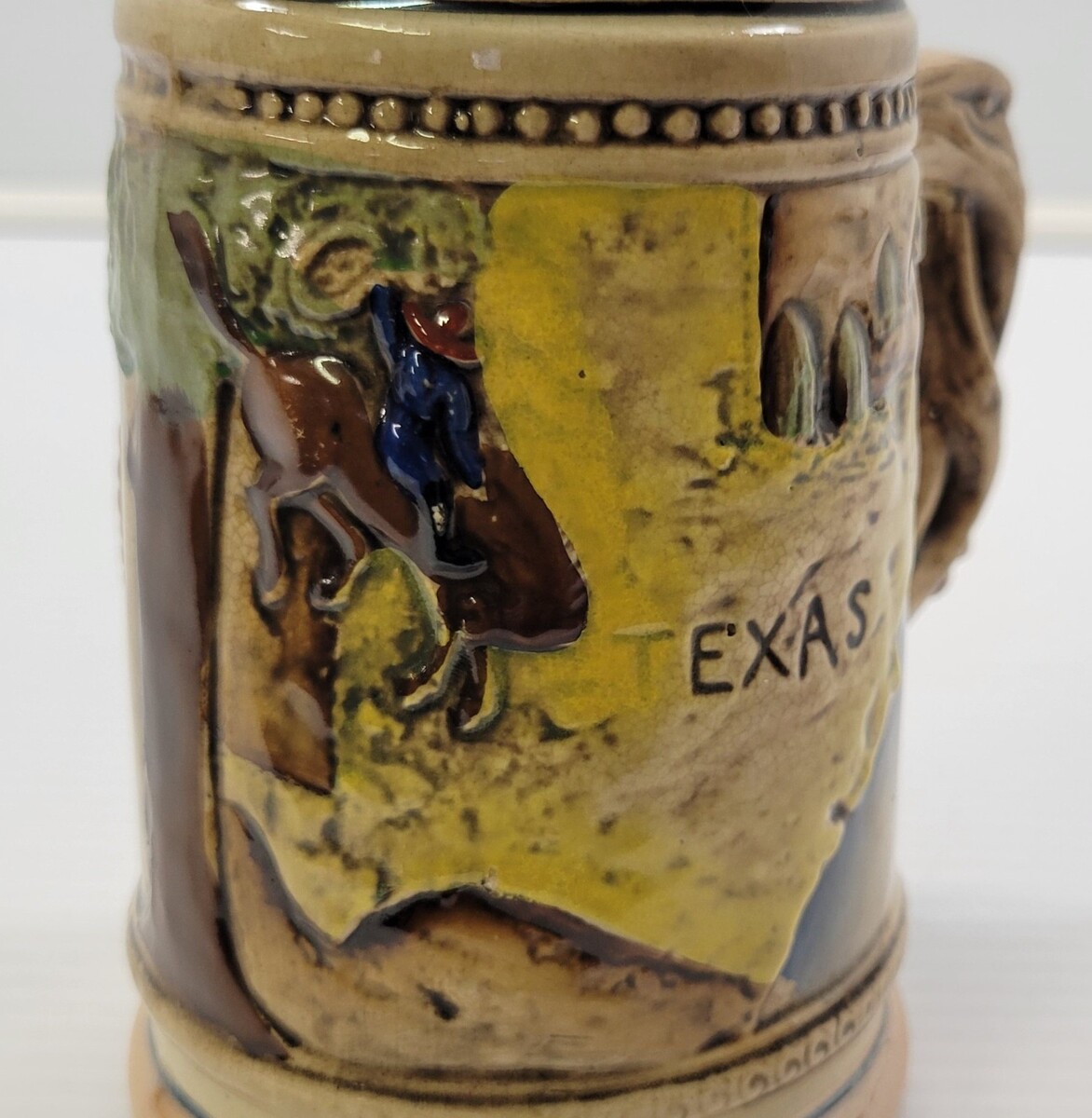 C) Vintage Texas Bull Ceramic Beer Stein Mug Travel Souvenir