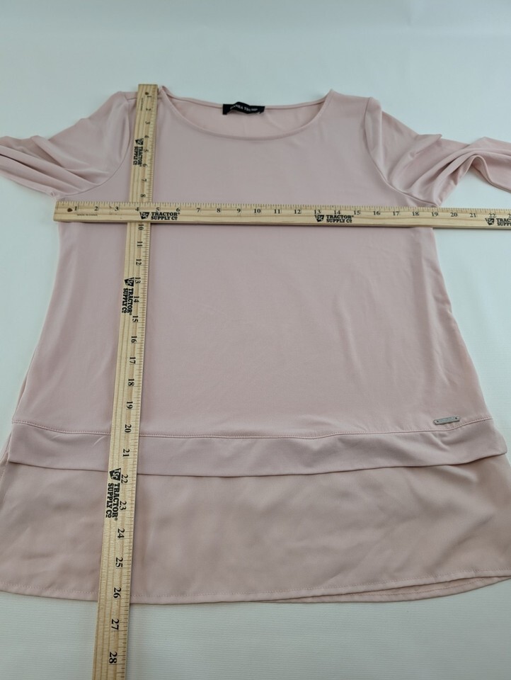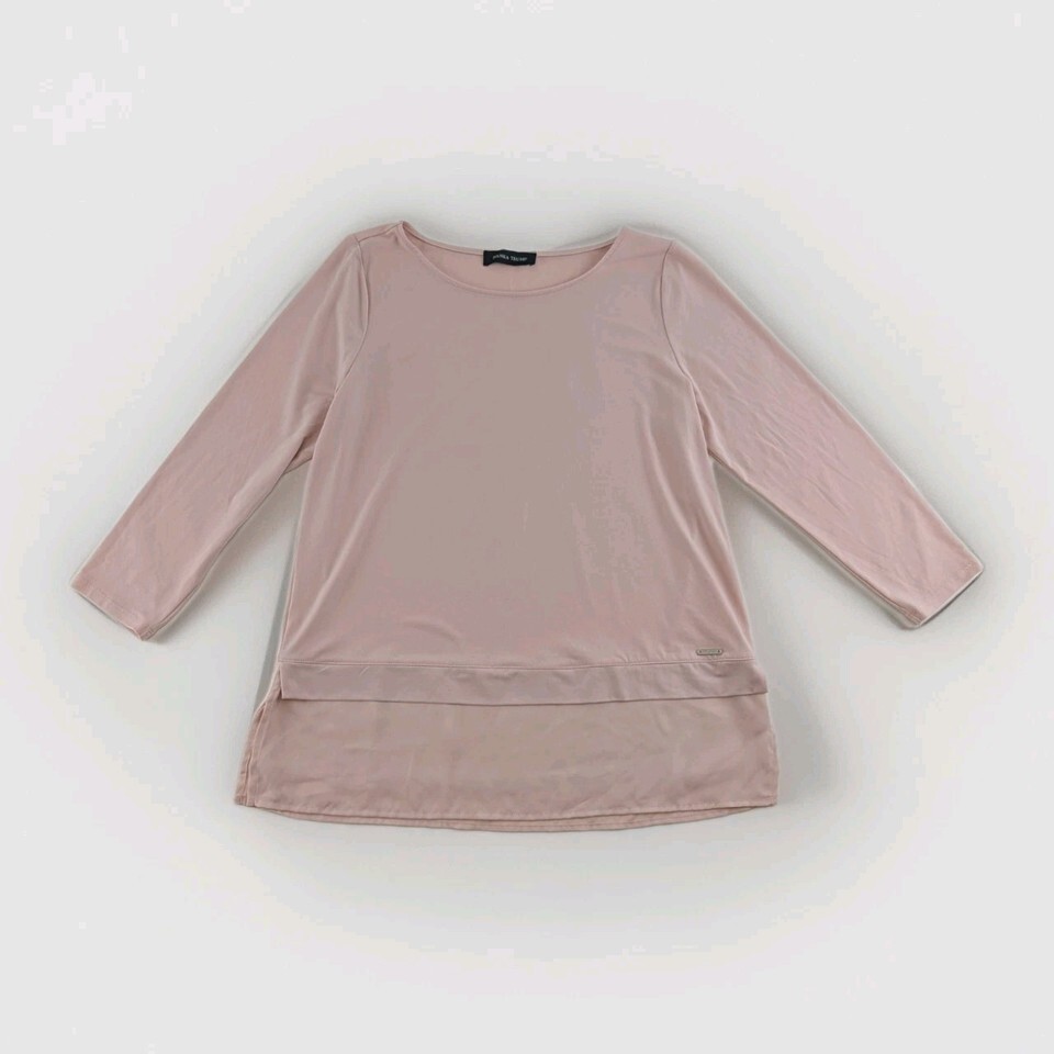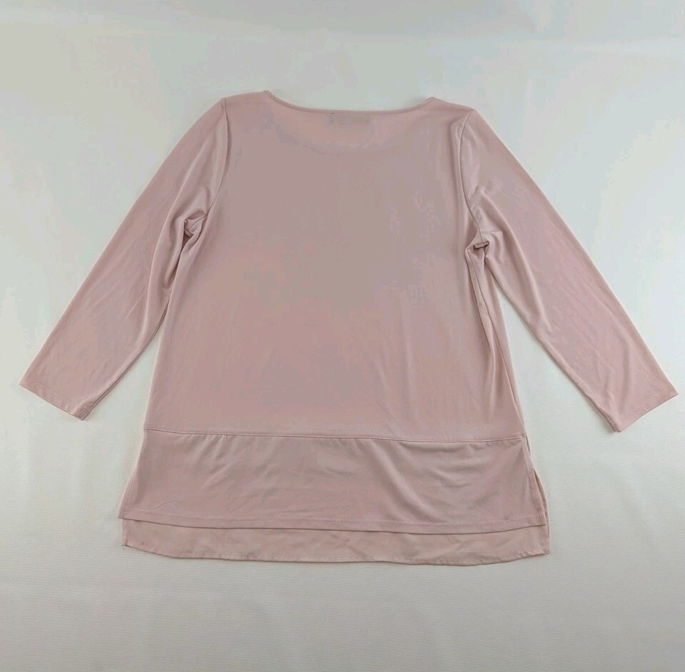 Ivanka Trump Womens Blush Pink 3/4 Sleeve Sheer Hem Tunic Top Size M