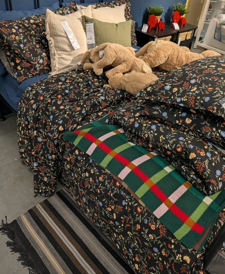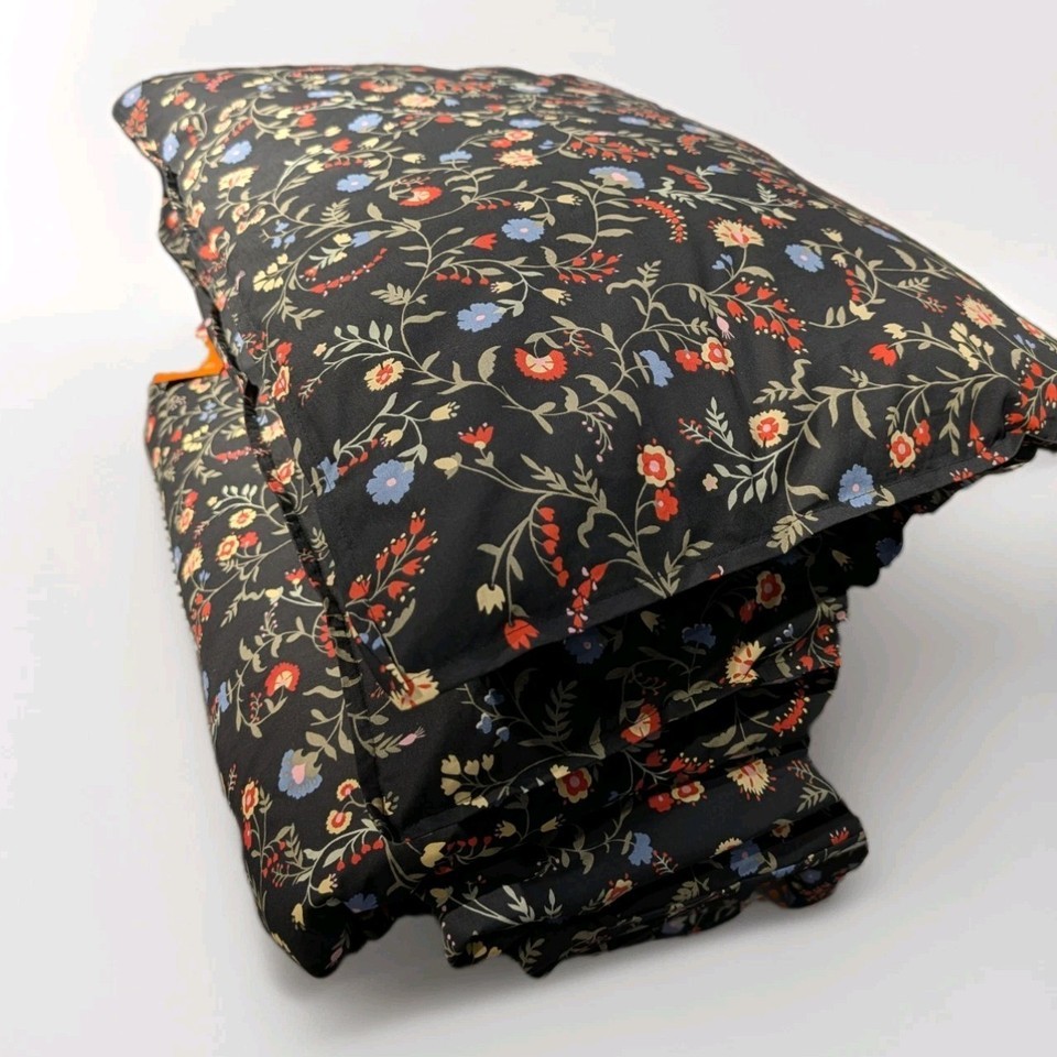 Ikea BRUDKRUSBAR Full/Queen Duvet Cover Pillowcase Black Multicolor Floral New