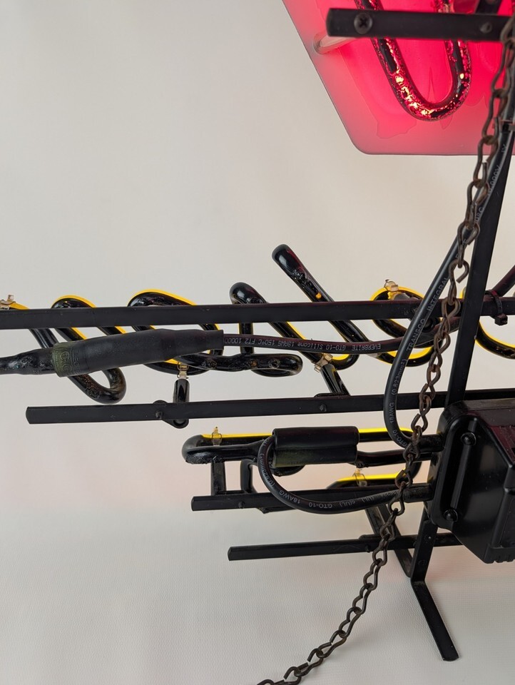 In good working condition has a tiny bit of the black paint chipping on the back of the letters. other than that in good working order.