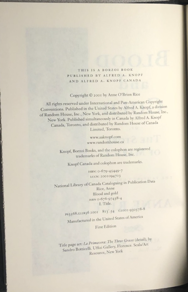 BLOOD AND GOLD The Vampire Chronicles by Anne Rice (2001) Knopf hardcover 1st