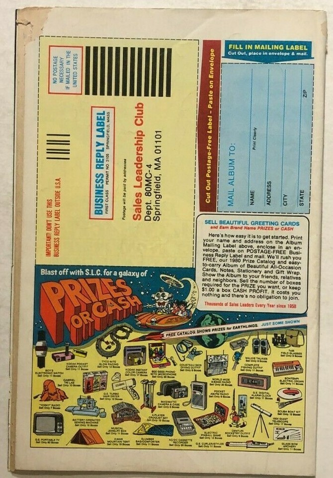 VERY GOOD+: most of the comics I list fall into this grade; a typical read comic with obvious defects as noted; may have light back cover stains.