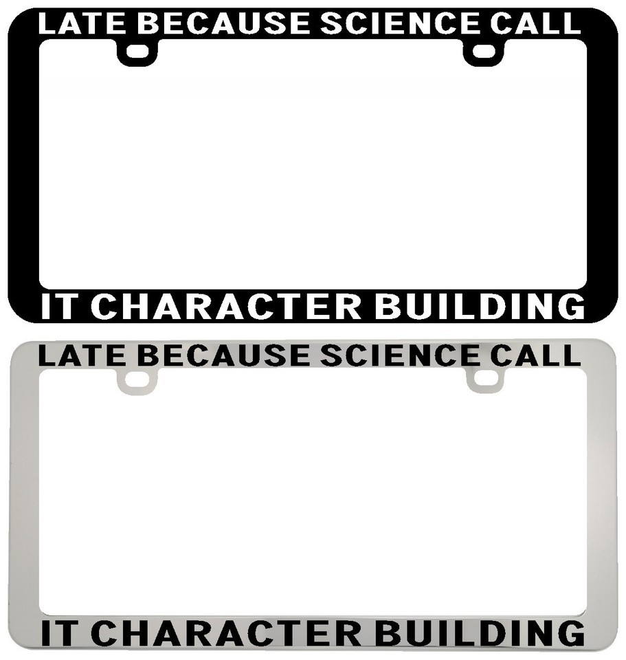 LATE BECAUSE SCIENCE CALL IT CHARACTER BUILDING License Plate Frame