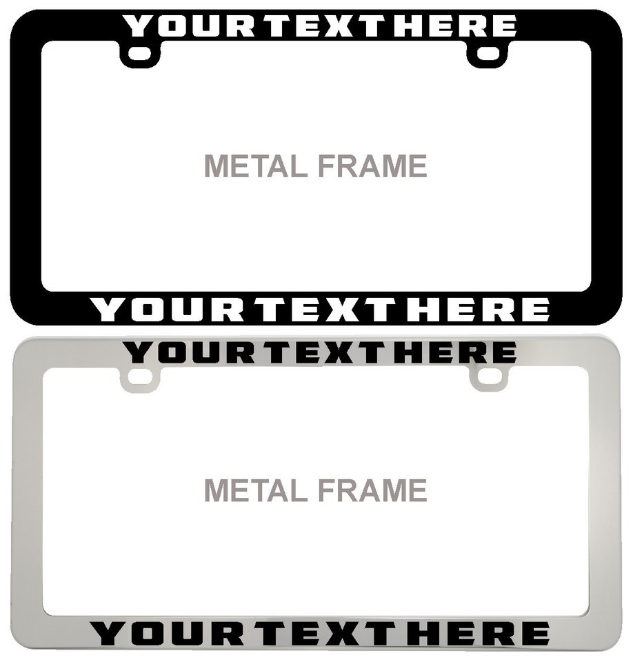 Custom Plastic Metal License Plate Frame ? Street Legal (6"" x 12"") Quick Overview: - Universal fit for U.S. Canadian plates (6"" x 12"") - Street-legal design (numbers stickers remain visible) - Choose from plastic or premium rust-resistant metal - Personalize the top bottom with your own message - Perfect for cars, trucks, SUVs, and gifts Pickup Trucks: For rear bumpers, use metal frames only (plastic will not fit). Handling: 1?3 business days. Ships USPS Ground Advantage. Details: Universal Standard Size ? Fits all U.S. Canadian license plates (6"" x 12""). Street Legal Fit ? Engineered so your plate numbers, registration stickers, and state tags remain visible. Options ? Lightweight, weather-resistant plastic or premium, rust-resistant metal. Includes ? One custom license plate frame. Personalization: Add your custom lettering, numbers, or message to the top and bottom sections. Perfect for funny quotes, motivational sayings, or unique designs. Why Choose Our Frames? - Two Material Options: plastic or metal - Fits cars, trucks, and SUVs - Great gift idea - Street-legal design won?t block tags - Personalization makes your vehicle stand out Handling Shipping: - Each frame is custom made to order - Handling time: 1?3 business days - Shipping: USPS Ground Advantage (U.S.)