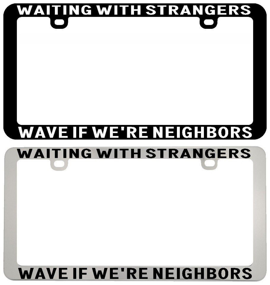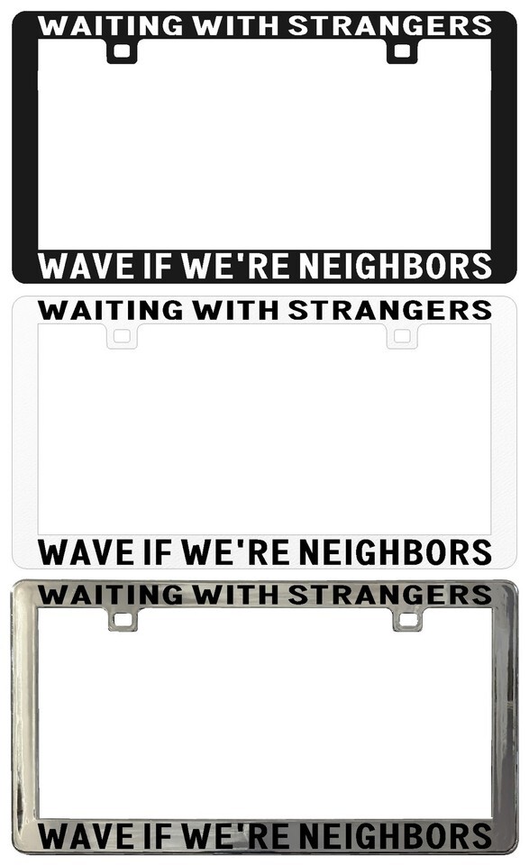 WAITING WITH STRANGERS WAVE IF WE'RE NEIGHBORS License Plate Frame