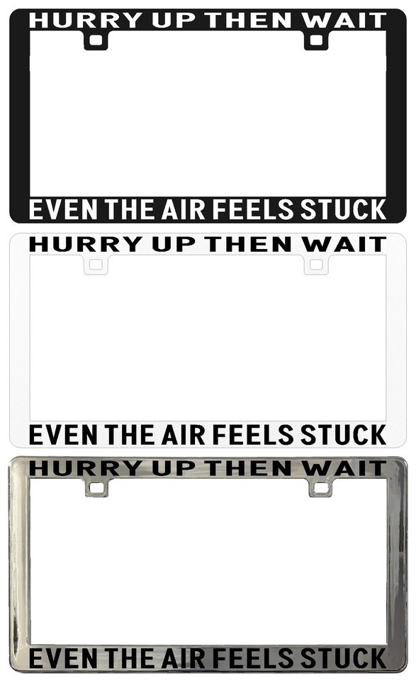 HURRY UP THEN WAIT EVEN THE AIR FEELS STUCK. Assorted Legal License Plate Frame