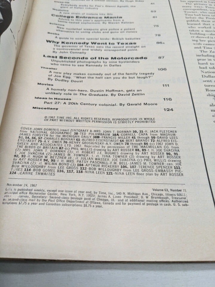 Life Why Kennedy Went To Texas November 24 1967 Magazine. Combined Shipping (for USA Customers Only)