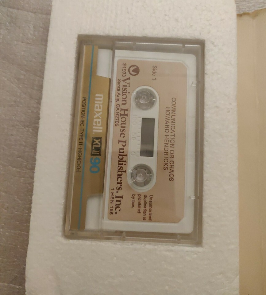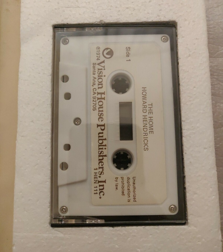 Cassette tapes include THE HOME and COMMUNICATION OR CHAOS by Howard Hendricks.