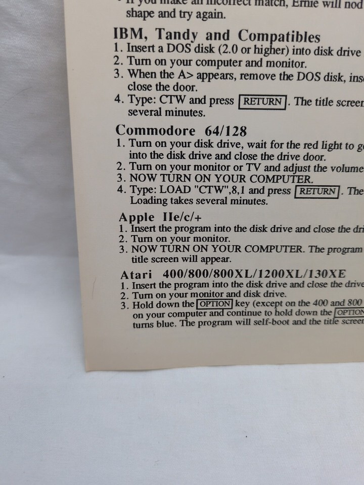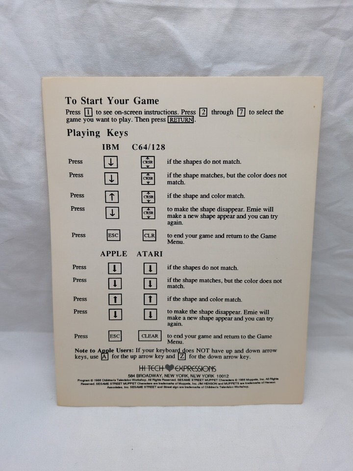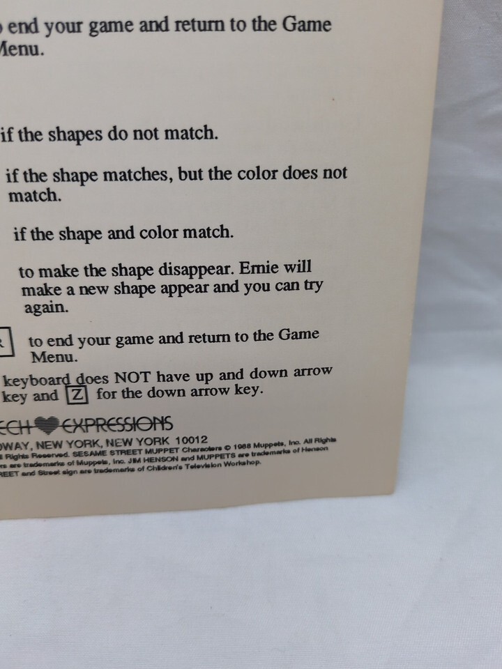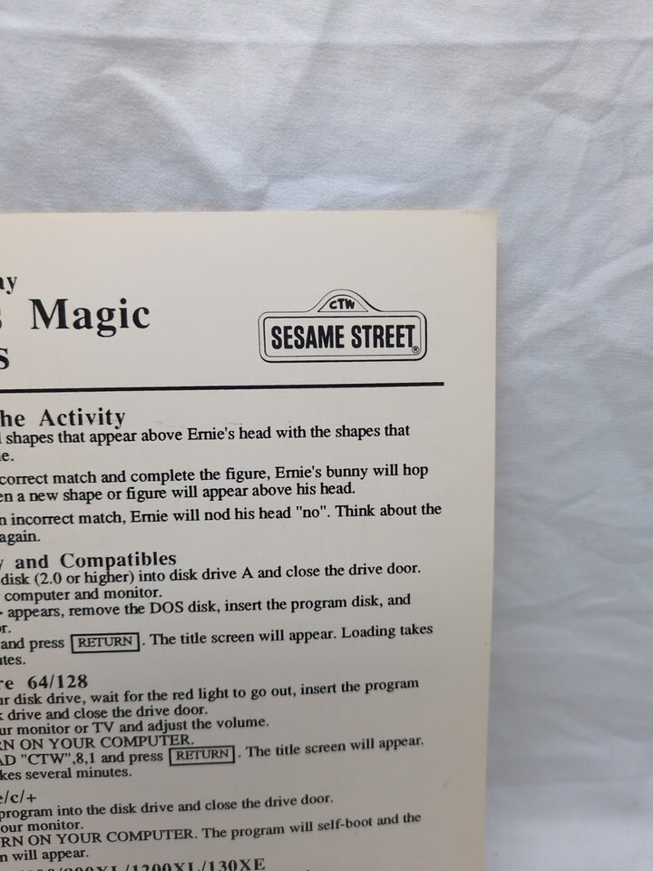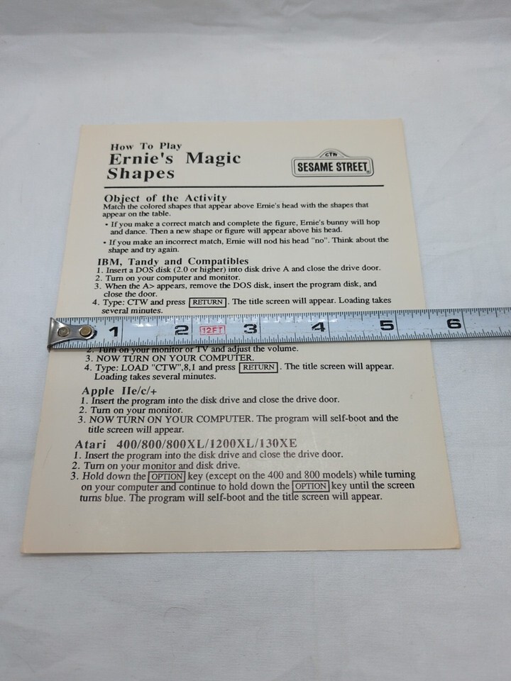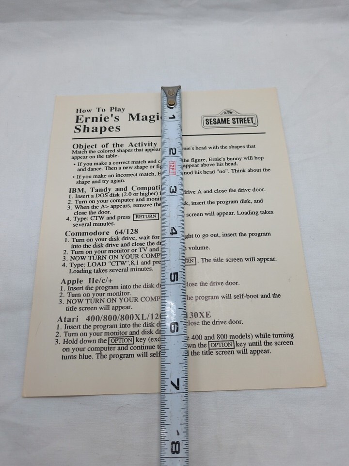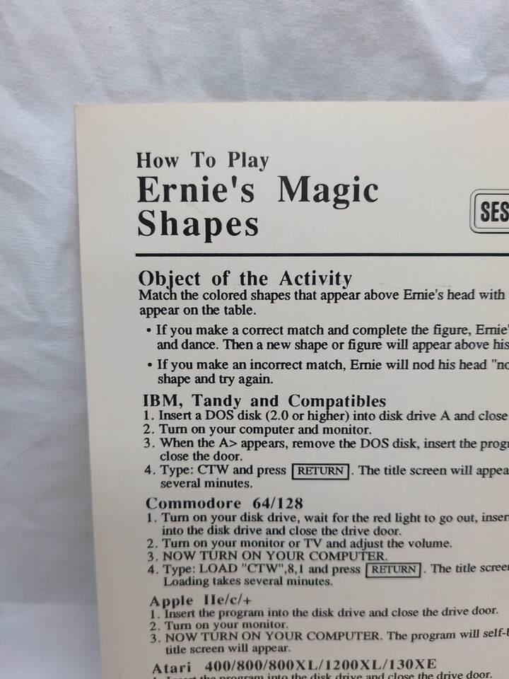 Vintage 1988 Sesame Street How To Play Ernie's Magic Shapes Sheet