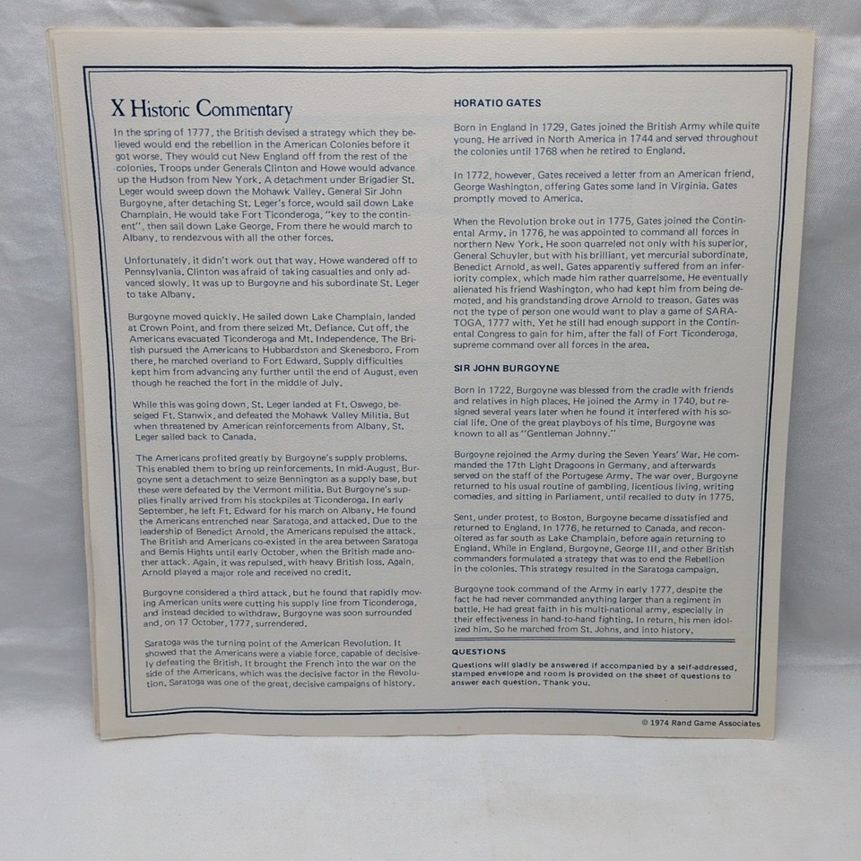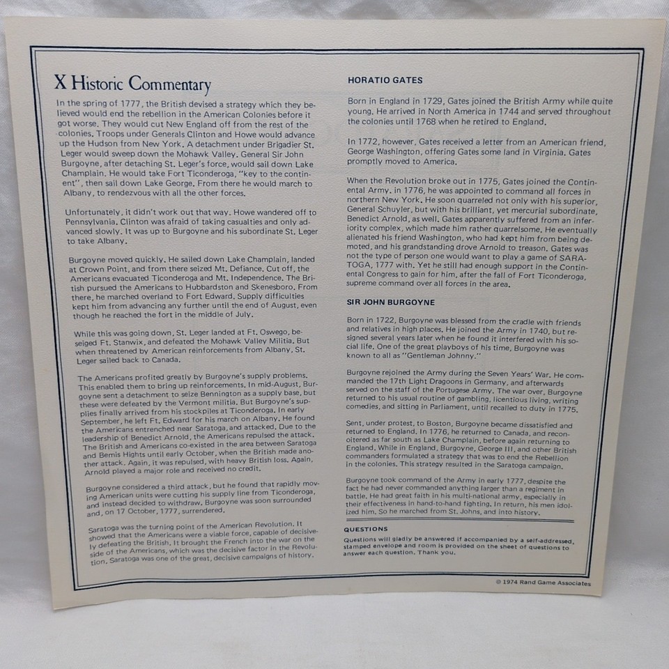 Saratoga:1777 Burgoyne Vs Gates Rulebook And and 50 similar items