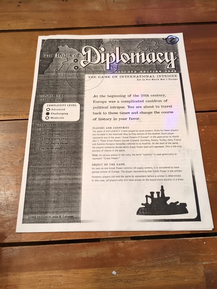 *Heavily Incomplete* 2000 Diplomacy Avalon Hill Board Game