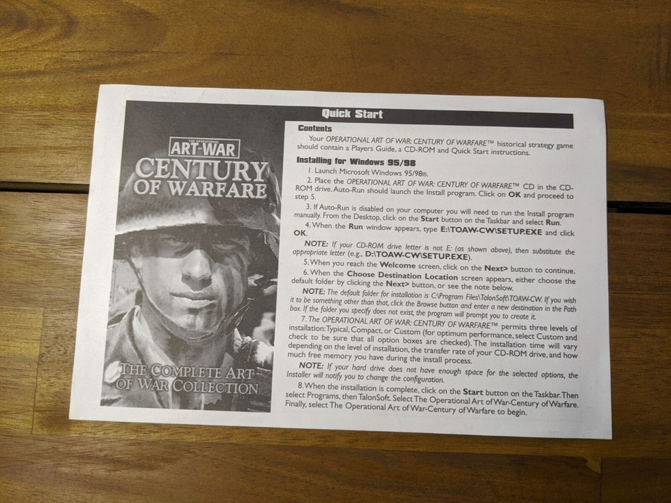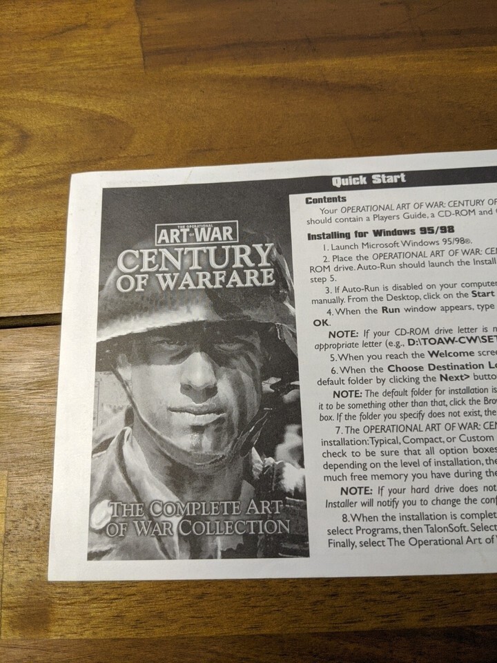The Operational Art Of War Century Of Warfare Quick Start Sheet Only
