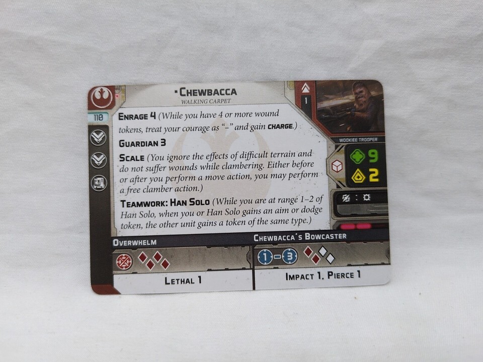 *No Miniature* Star Wars Legions Chewbacca Operative Expansion Cards And Tokens