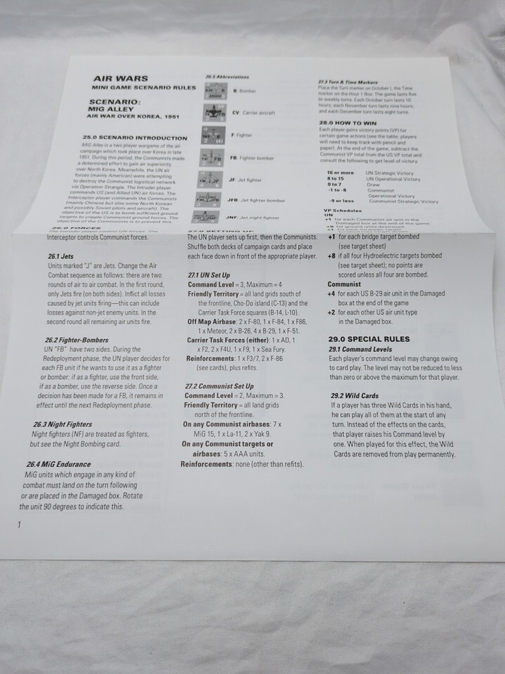 *Missing Cards* Mig Alley Air War Over Korea 1951 Decision Games Board Game