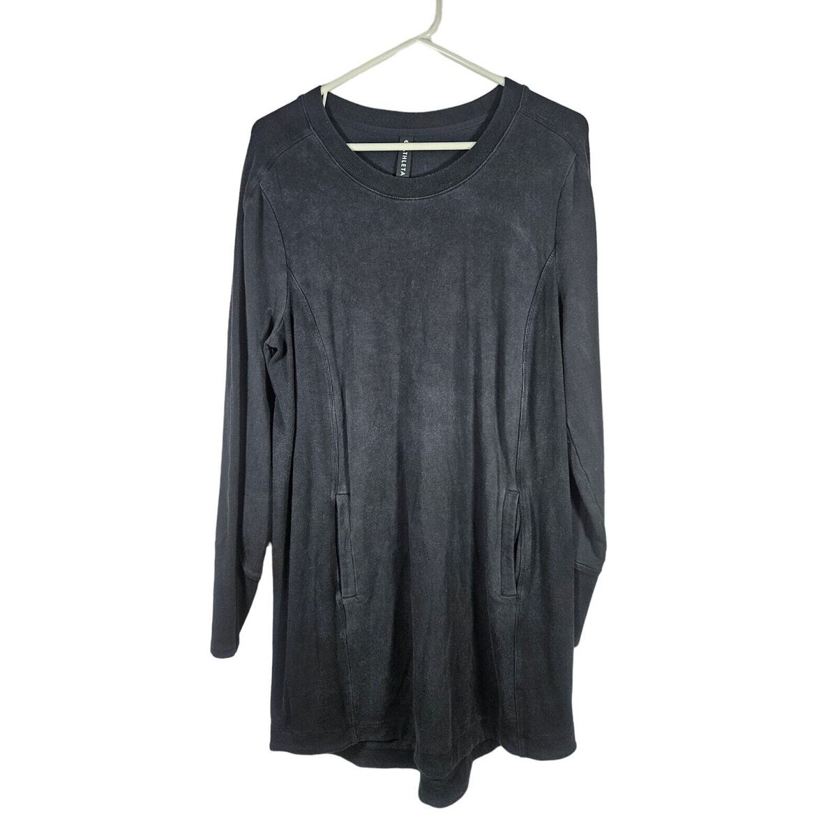 Athleta Women's Long Sleeve Sweatshirt Pockets Distressed Black Comfy Size Large