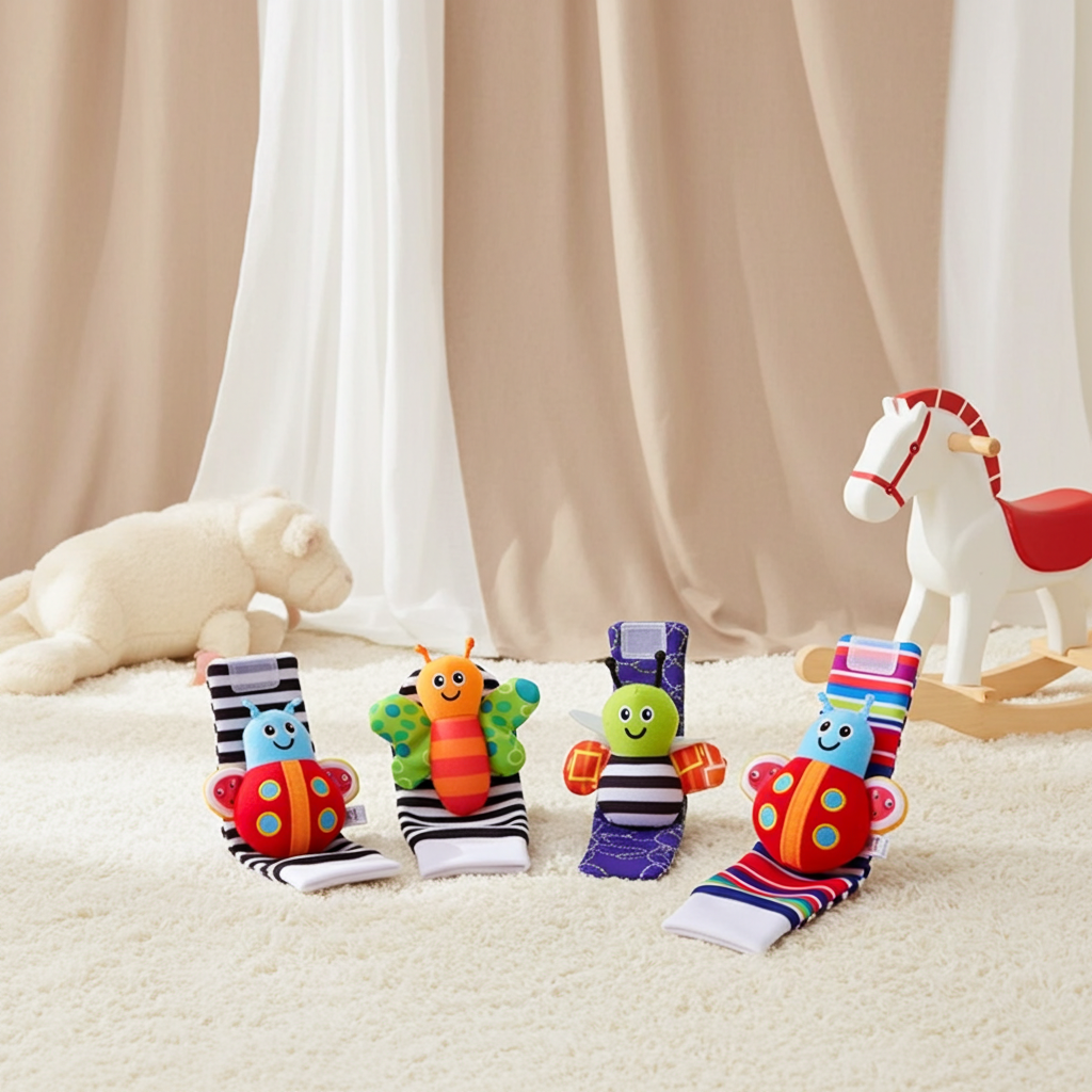 Baby Wrist Rattle Socks Set, Colorful Animal Design, Zebra Stripes