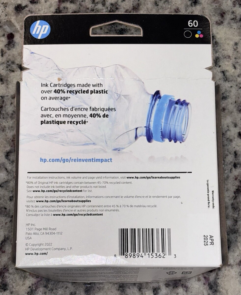 Genuine HP 60 Combo 2pk Ink Cartridges Black Tri-color N9H63FN 4/2025