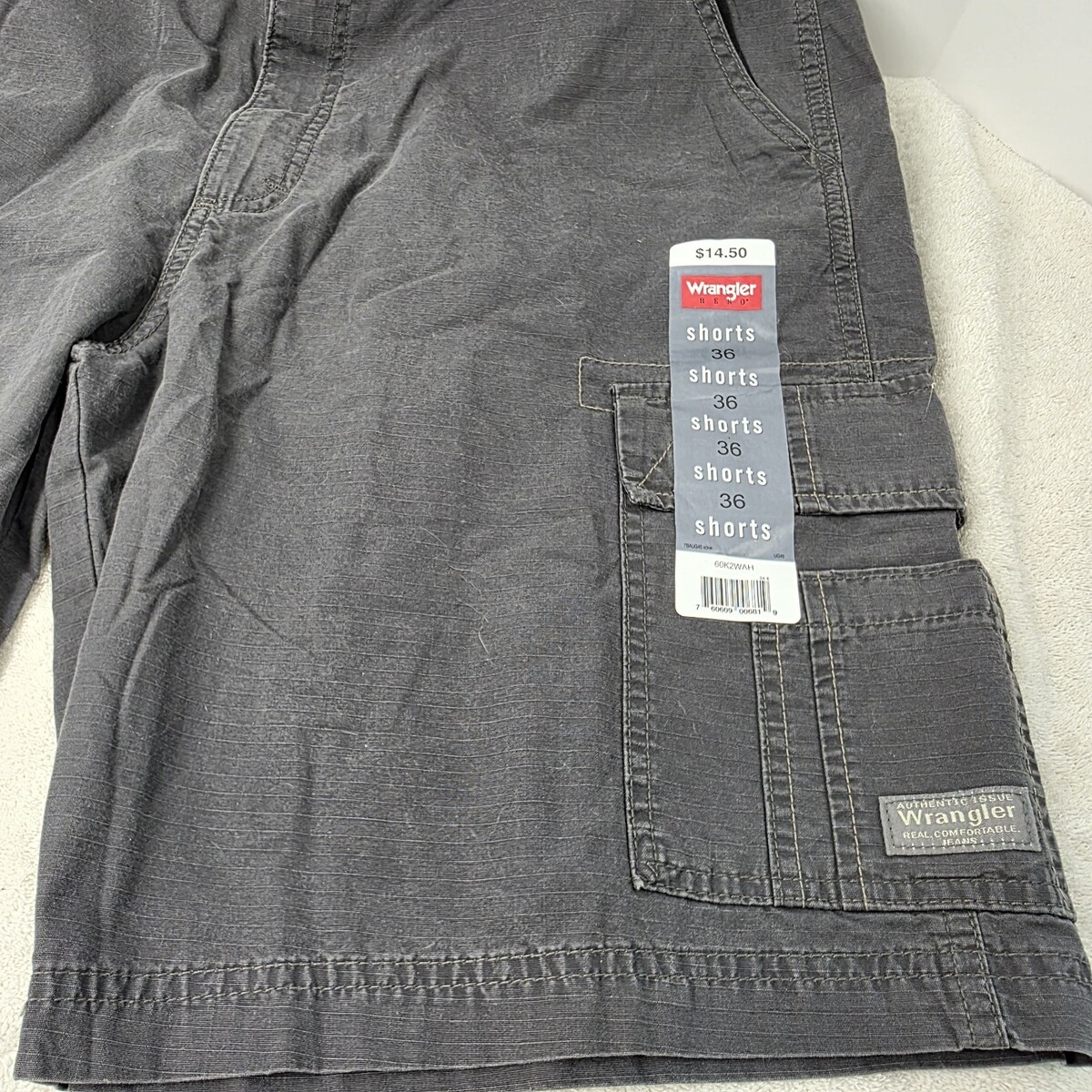 Wrangler Authentic Jeans Hero Men's Size 36 Gray Loose Fit Cargo Hiking Shorts