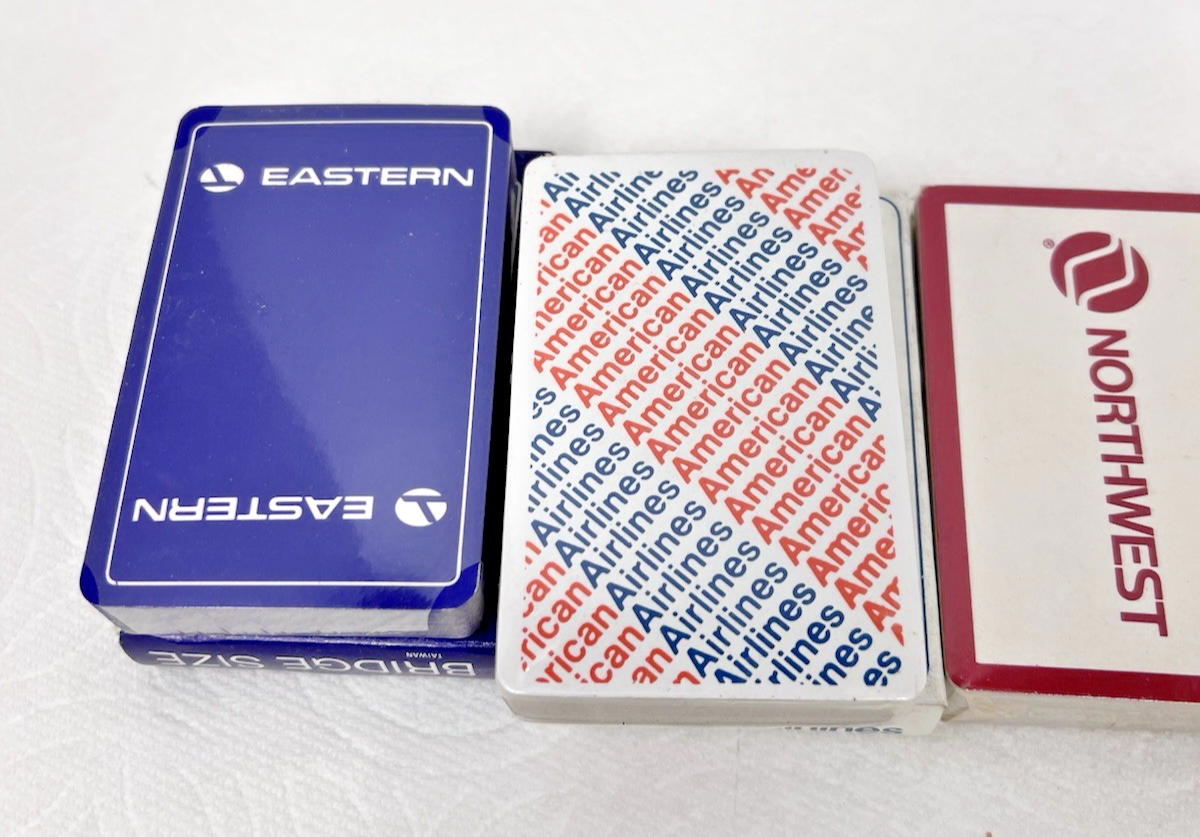 5 Airlines Decks of Cards New Old Stock Never Used Eastern American Atlanta NW