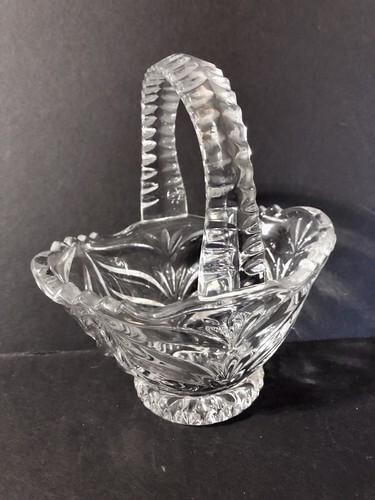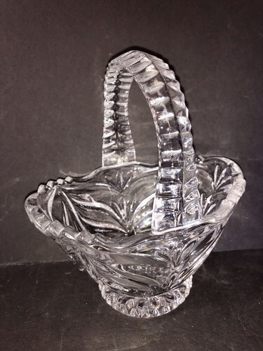 Vtg Anna Hutte Bleikristall 24% Lead Crystal Cut Glass Basket Candy Dish Vase