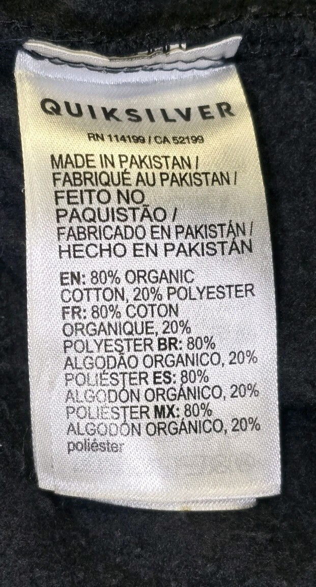Quicksilver Hoodie Boys L Black Full Zip Logo Organic Cotton/Poly EU/AUS 14