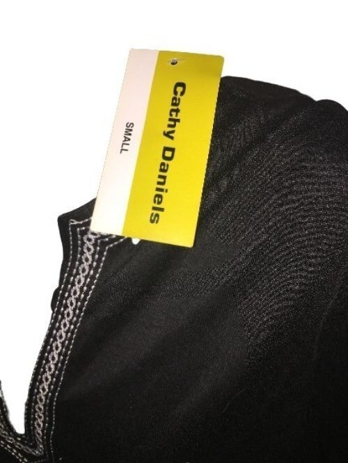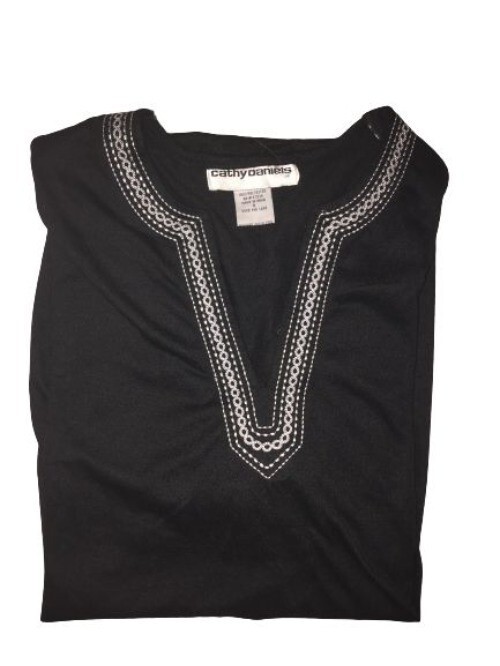 Cathy Daniels Black Split -Neck Short Sleeve Blouse Shirt Top Small S