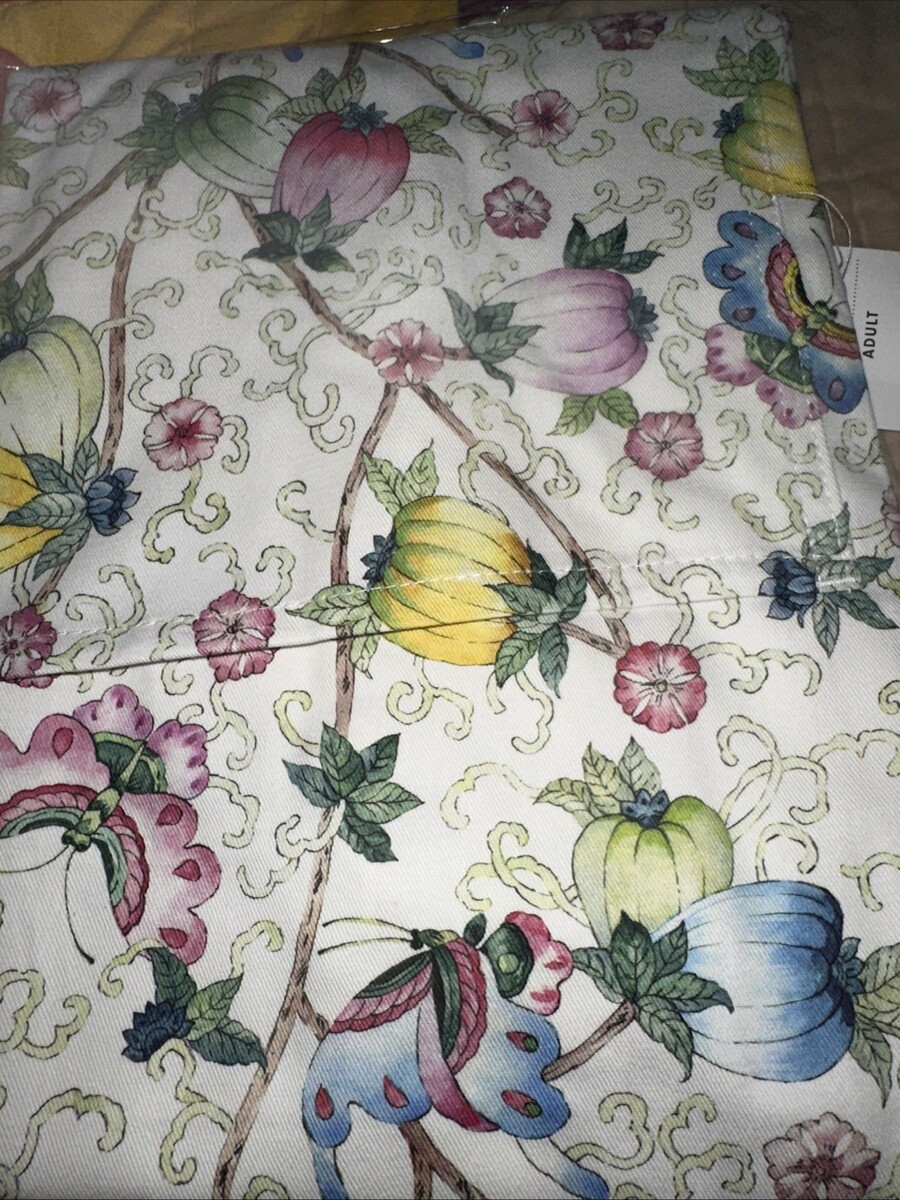 NEW William Sonoma Famille Rose Apron Multicolor FRUITS FLOWERS BUTTERFLIES NWT