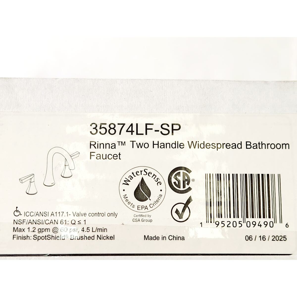 WaterSense, ADA Compliant, NSF, ANSI |