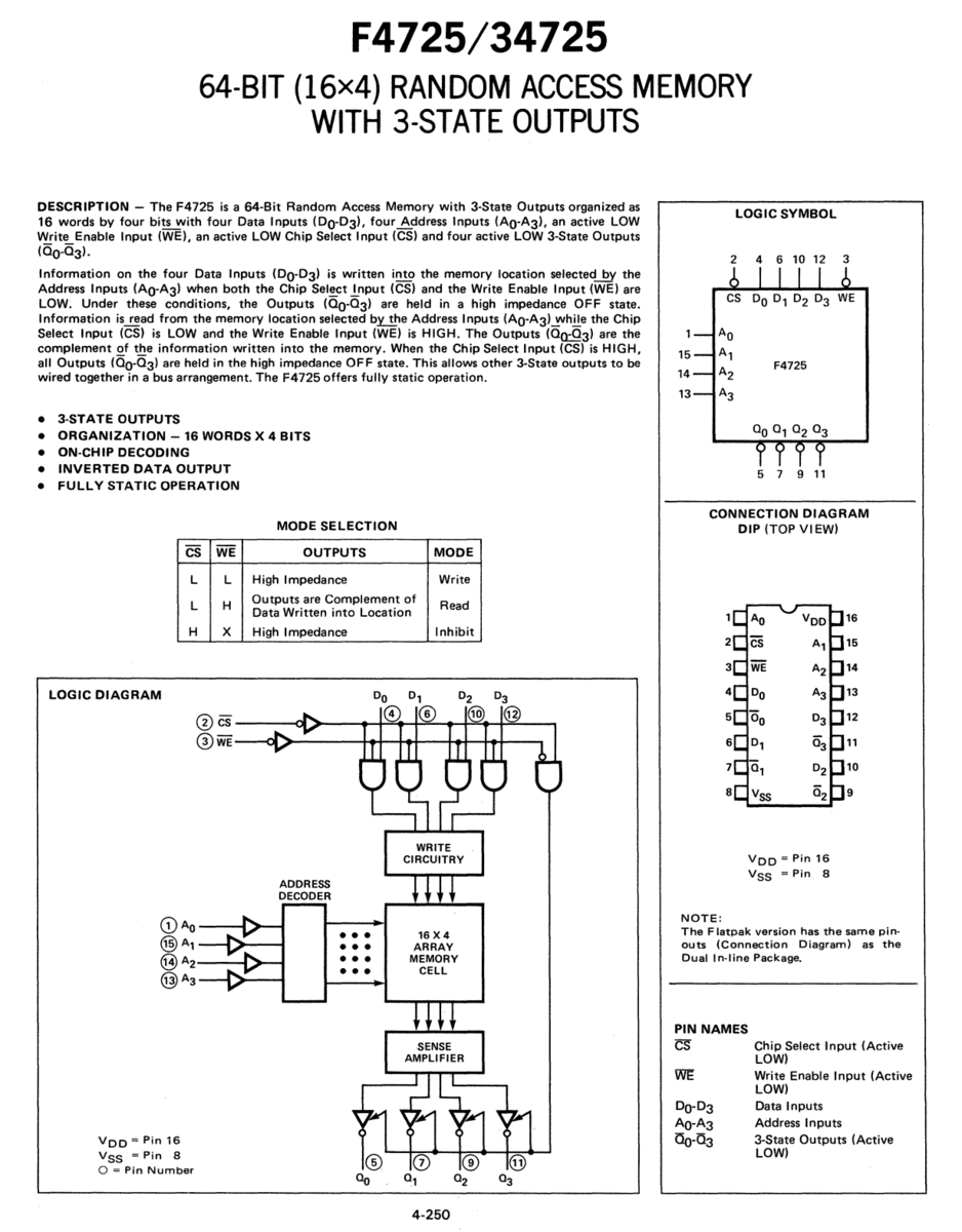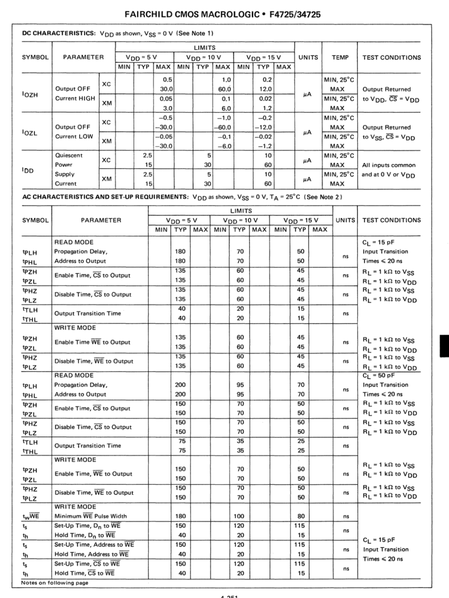 4725DC Fairchild CMOS SRAM 64 Bit Static RAM and 50 similar items