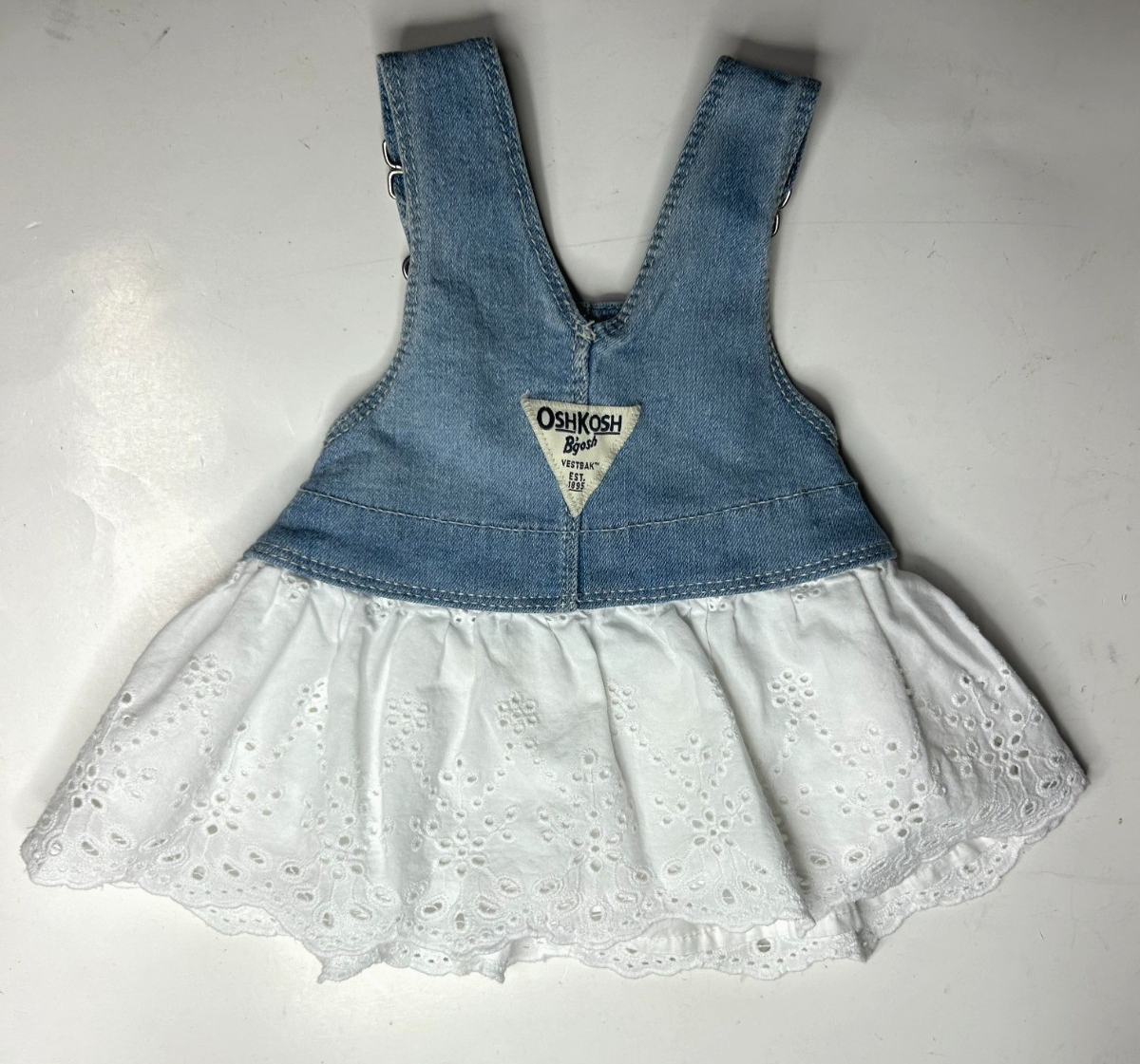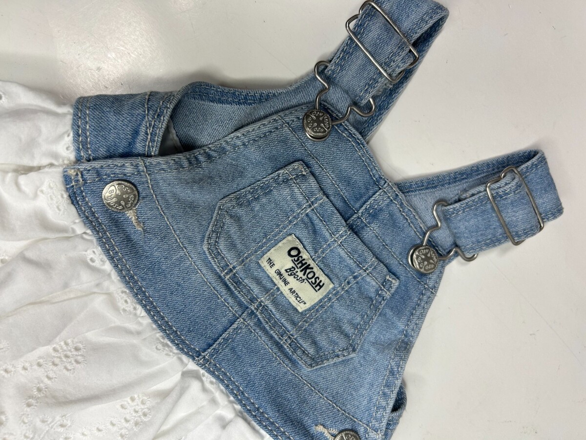 Osh Kosh B'Gosh Baby Girl's 3M Blue Denim Overall Jean Dress w/ White Eyelet Bib