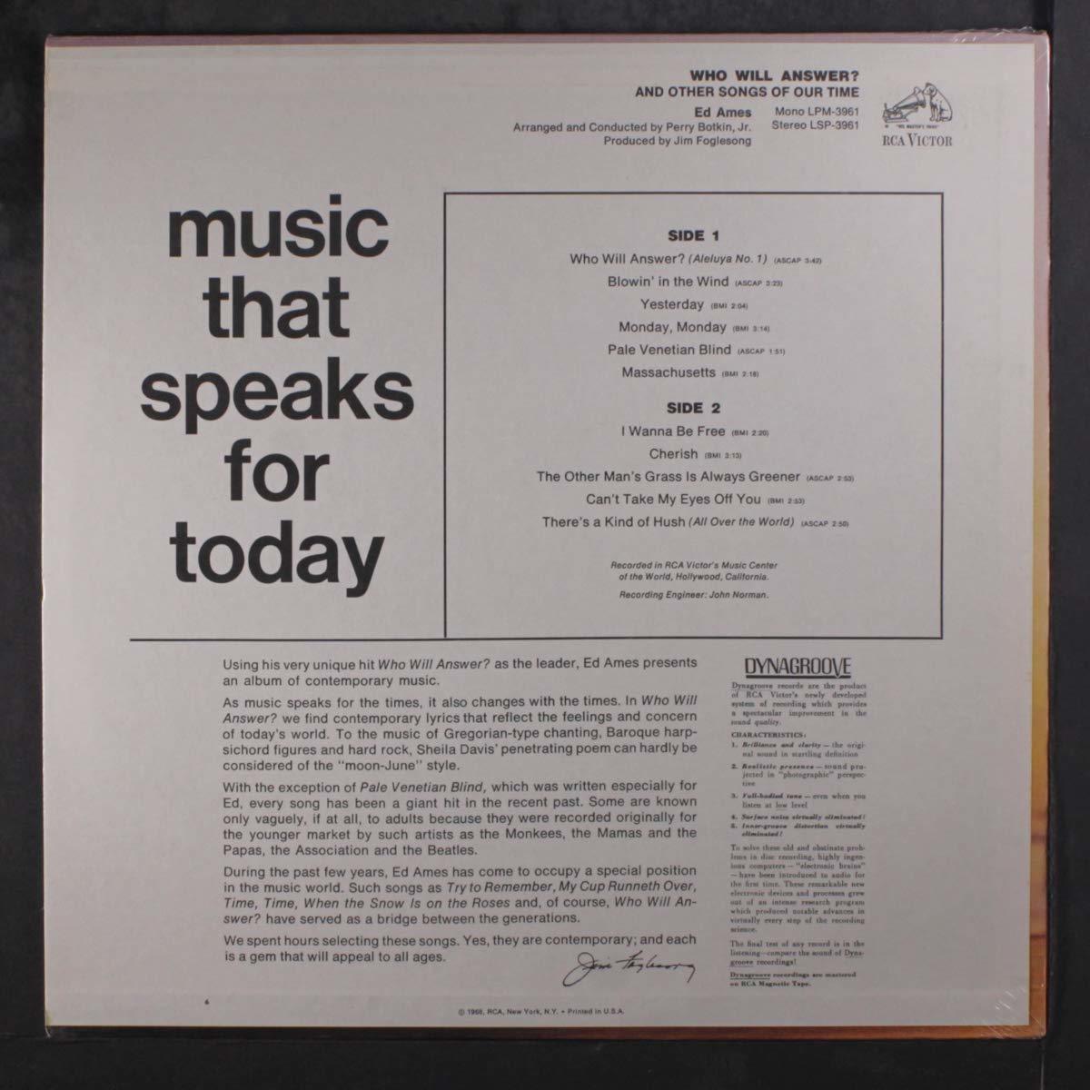 Who Will Answer? And Other Songs of Our Time LSP-3961 [Vinyl] ED AMES