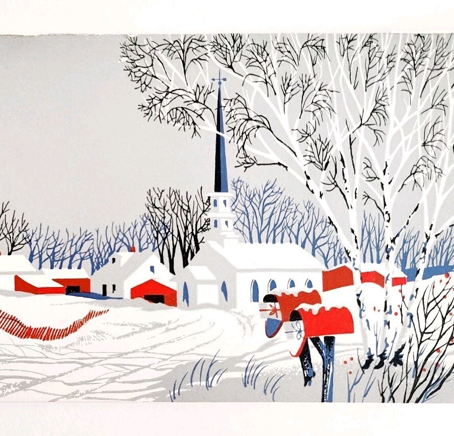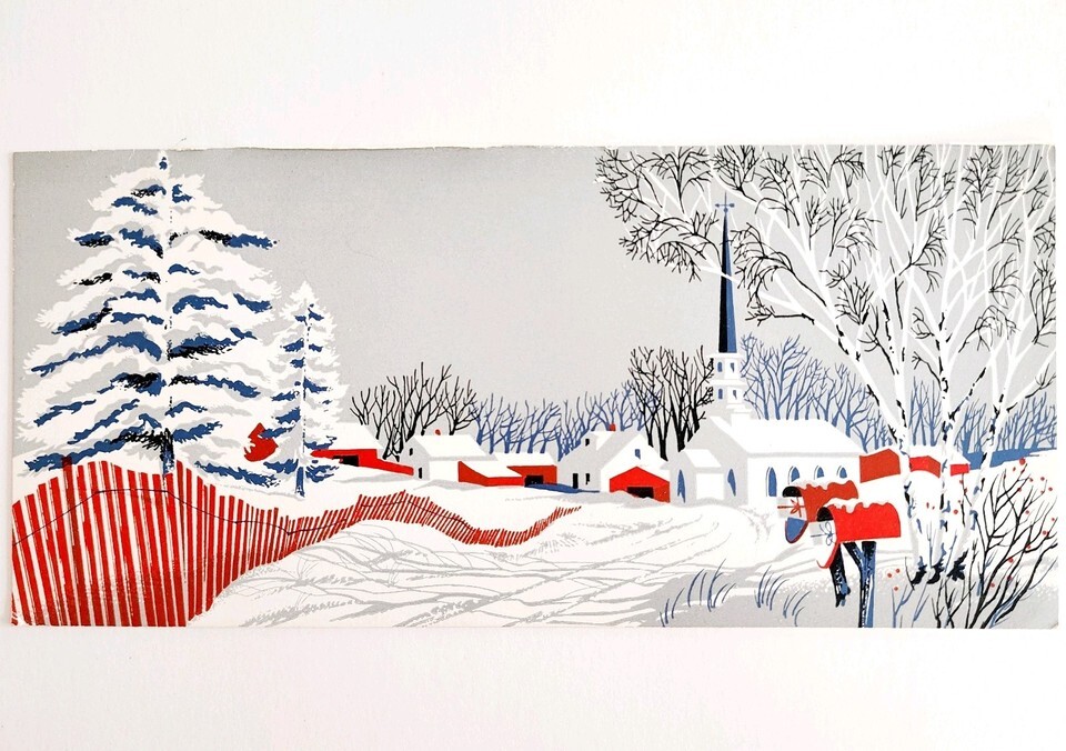 1960s Christmas Card Lithograph Winter New and 45 similar items
