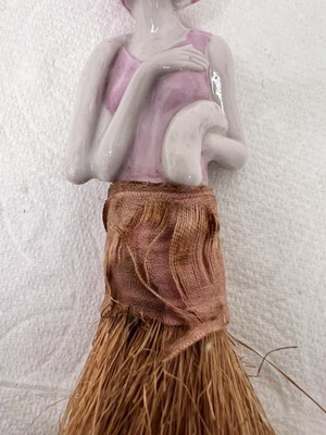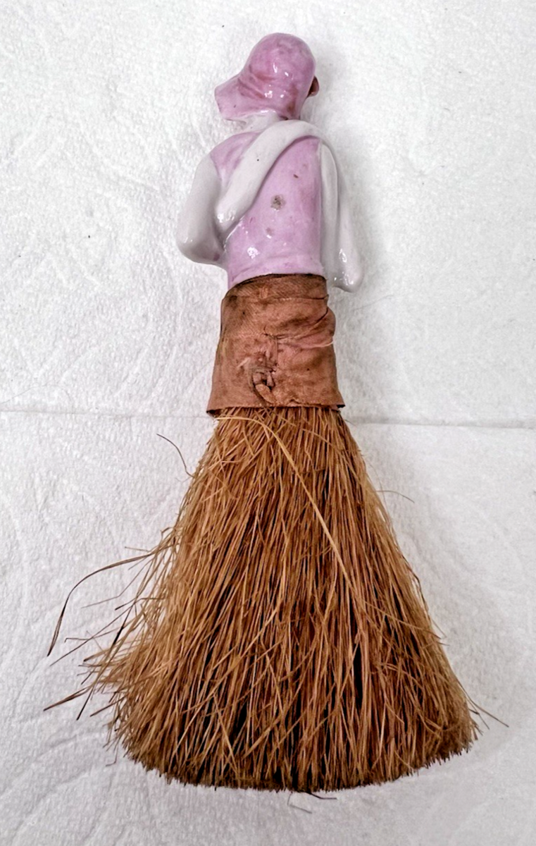 Antique Germany Arms Away 1/2 Flapper Doll Pink w Fur Stole Brush Handle 5 3/4" In good shape she has no chips or breaks the brush has wear as does the silky wrap