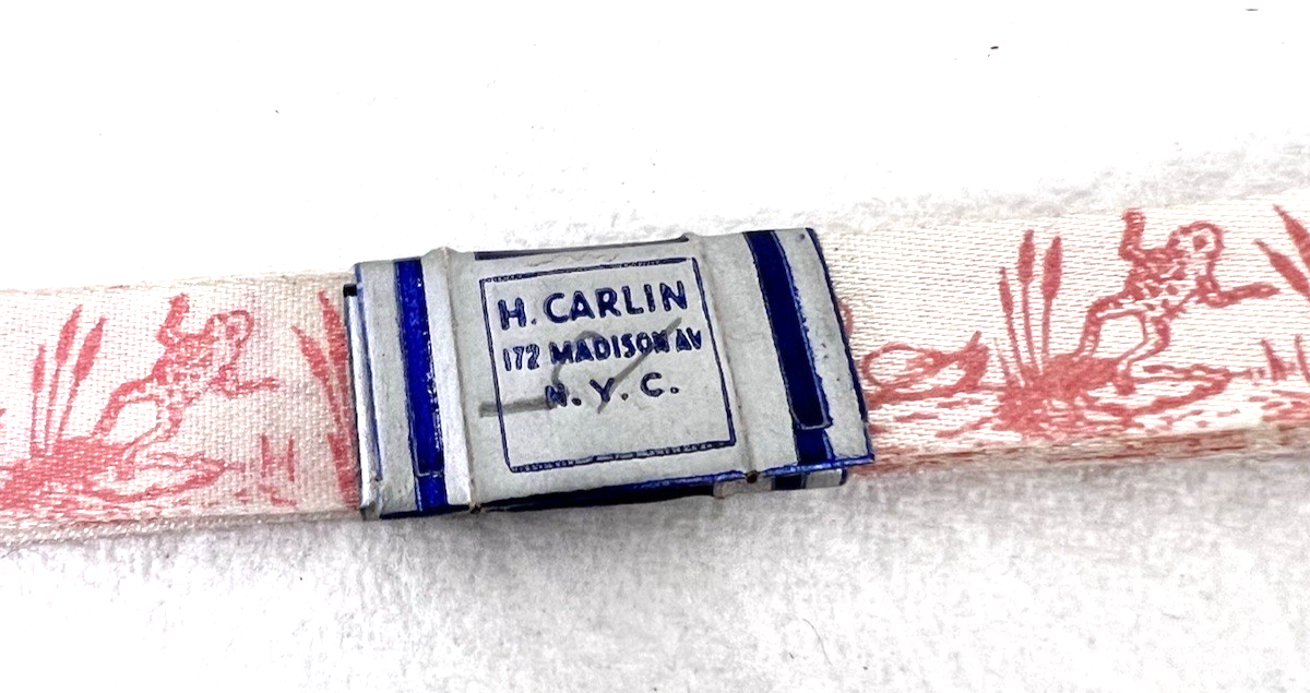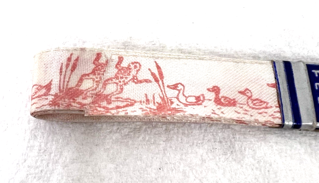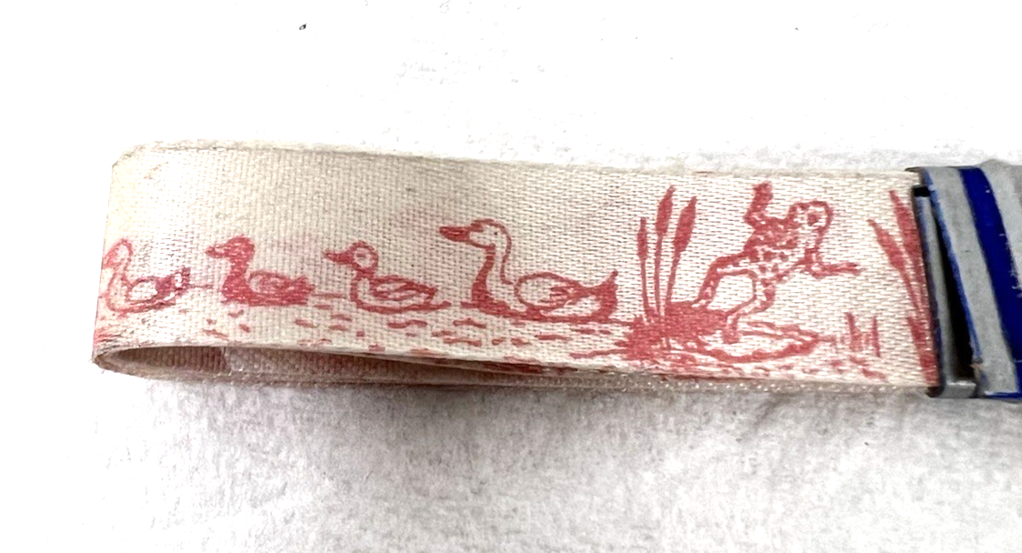 Vintage H Carlin Gift Wrap Ribbon Printed w Ducks Frogs In Water MIP 7FT Pink Just over 1/2 inch wide Never used however the blue is actually light pink in person the flash makes it darker than it really is