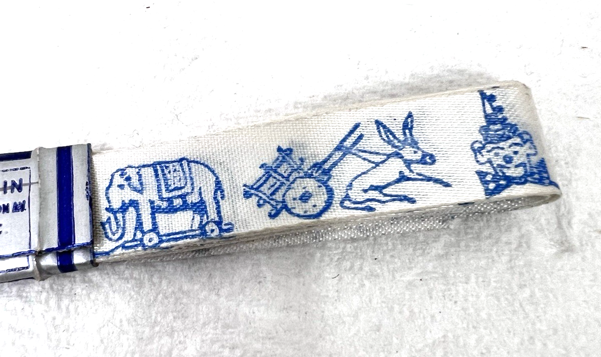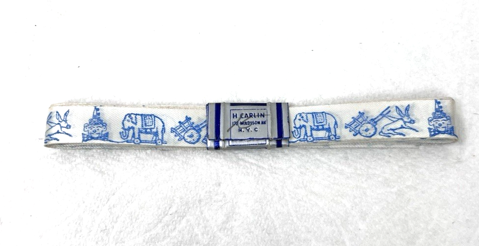 Vintage H Carlin Gift Wrap Ribbon Printed Elephant Toys Donkey Clown MIP 7FT Just over 1/2 inch wide Never used however the blue is actually light blue in person the flash makes it darker than it really is